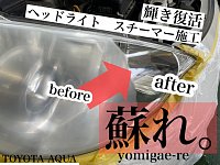 こんにちは、こんばんは!原でございます! 【ヘッドライトスチーマー】 大大大変好評!!!!!!!!!!!!!!! につき、本日も事例をご紹介します。 本日は、トヨタ アクア 10系 施工前 大人気のアクア!! しかし、ヘッドライトが黄ばんだお車が多く… なんとかしたいけど・・・ ヘッドライトご...