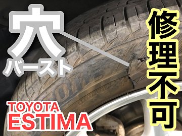 こんにちは!ナミ兵こと浪岡です! 本日バーストでご来店されたエスティマ。。。 何かに引っ掛けたという事で、タイヤ側面に穴が・・・ タイヤはつぶれており、側面だと修理も負荷という事で 新しくすることとなりました。 で、点検させて頂いたところ、後ろのタイヤも似たような傷が・・・ おそら...