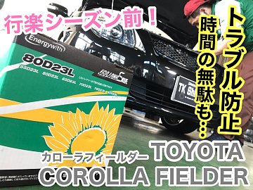 こんにちは!ナミ兵こと浪岡です! 本日はトヨタ・カローラフィールダーのバッテリー交換を実施です! 元々パナソニックのカオスを搭載しておりましたが、 そちらも弱ってきているようで、 交換をさせていただきました! サイズも大きく少々お高いサイズにはなってしまいますが、 バッテリーも近年...
