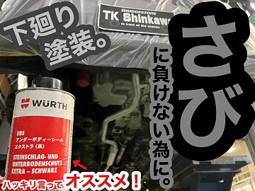 こんにちはこんばんは(^^)/ 原でございます! 本日は、前回のご紹介と同様に サビ止めコーティング のご紹介です! (前回の内容はコチラからどうぞ!) 今回は、ウルト製「アンダーボディーシール」を 施工させていただきました! 黒い塗料を吹き付ける防錆コーティングは色々ありますが、 アンダ...