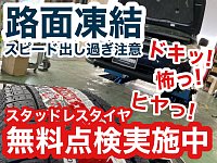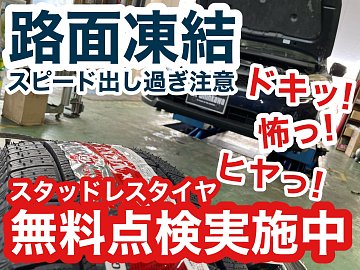 どーもジャイアンです★ みなさん!路面凍結注意です! ホントに滑ります!お気を付けください! 一気に気温が下がり、普段走りなれている道も 凍結の恐れがありますので、 スピードの出し過ぎにはご注意ください。 先日、ご来店いただいたお客様は、 「緩やかななんてことないカーブで一回転した」 ...