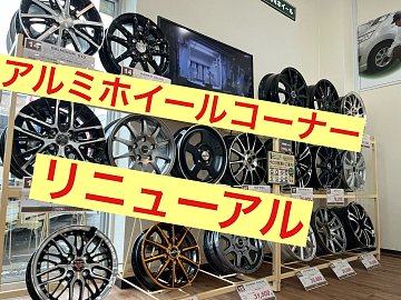 こんにちは!原です!!! 今日は店内のご紹介です♪ オシャレは足元から♪♪ということで… アルミホイールコーナーをリニューアルしました!!Σ(・ω・ノ)ノ! 当店こだわりの展示スペースとなっております! 流行りのブラックポリッシュのホイールや、SUV向けのホイールもございます! 展示ホイール以外で...