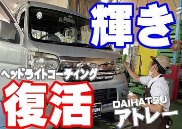 どーもジャイアンです★ 本日は、 ダイハツ・アトレーに 「ヘッドライトコーティング」を施工させていただきました♪ かなり黄ばみが発生しており、 見栄えもそうですが、ヘッドライトの明るさも低下していたのではないでしょうか。。。 施工前 施工後 ヘッドライト職人により 施工開始!! ヘッドラ...