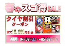 こんにちは(^^)/ アプリからの作業予約でクーポンが使えます!! 期間限定になっていますのでお早めのご予約お願い致します(^^)/ 04/09(土)~04/17(日)までの期間で スゴ得SALEを開催しています!! 皆様のご来店お待ちしております♪