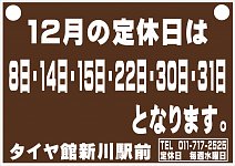 こんにちは! いつもブログをご覧いただきありがとうございます。 お知らせにも掲載しておりますが、 明日12/14と明後日15日は定休日となりますので お間違えないようお願い致します! 16日木曜日より通常営業となります。