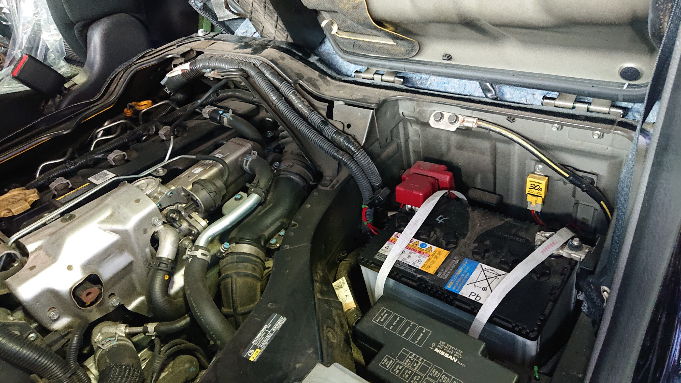 ハイエースのバッテリーは助手席の下…