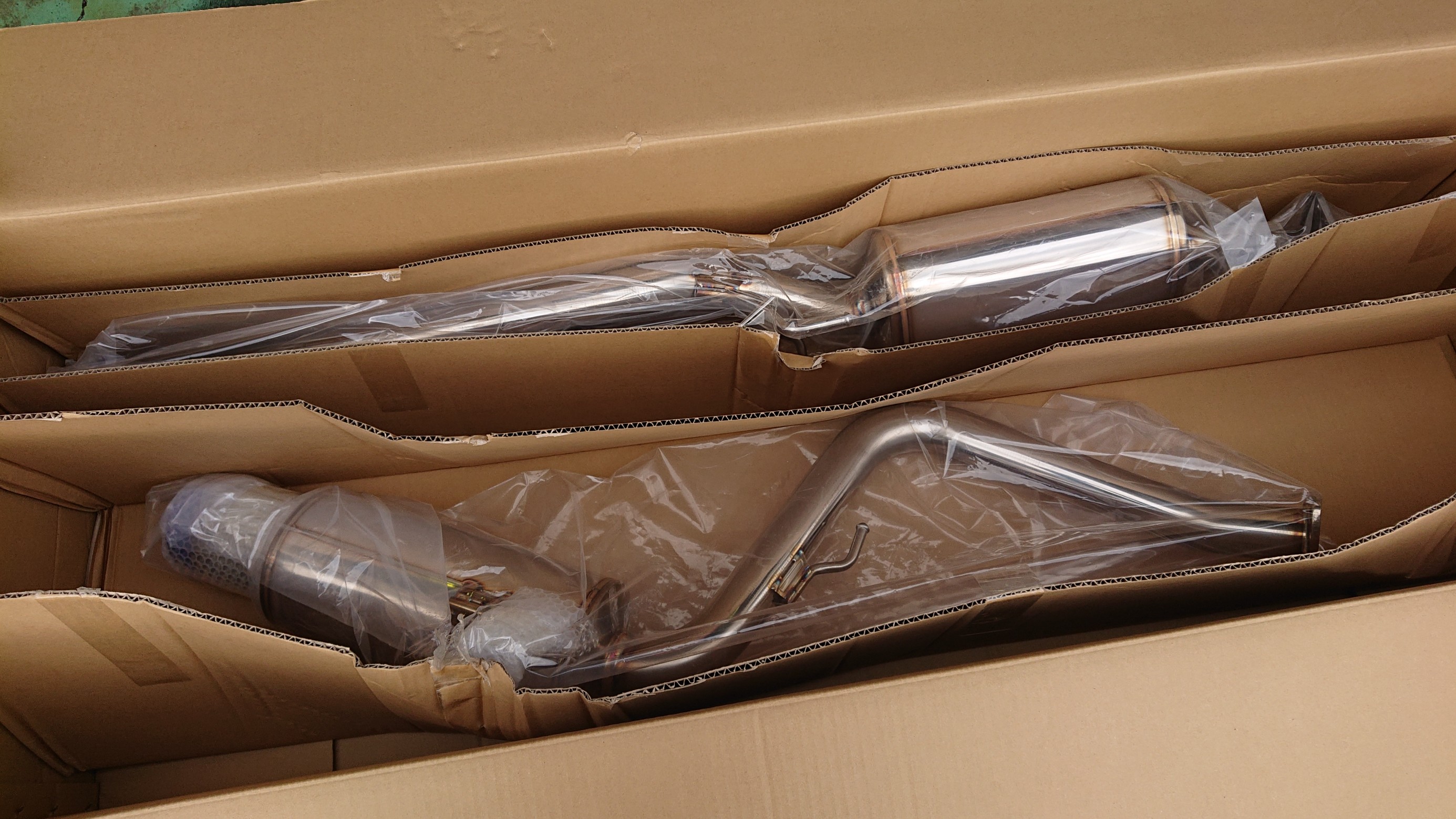 触媒センターパイプ付き。二本に分割されて梱包されてます。