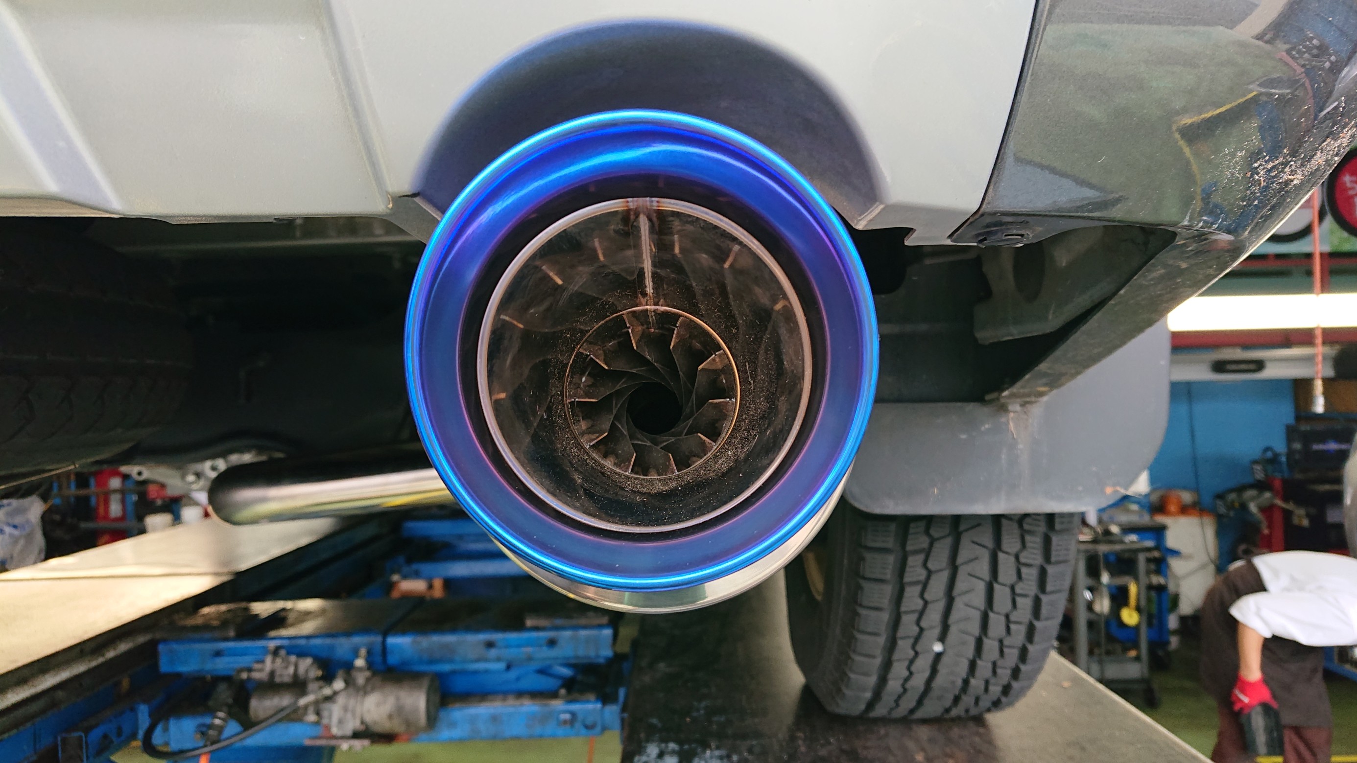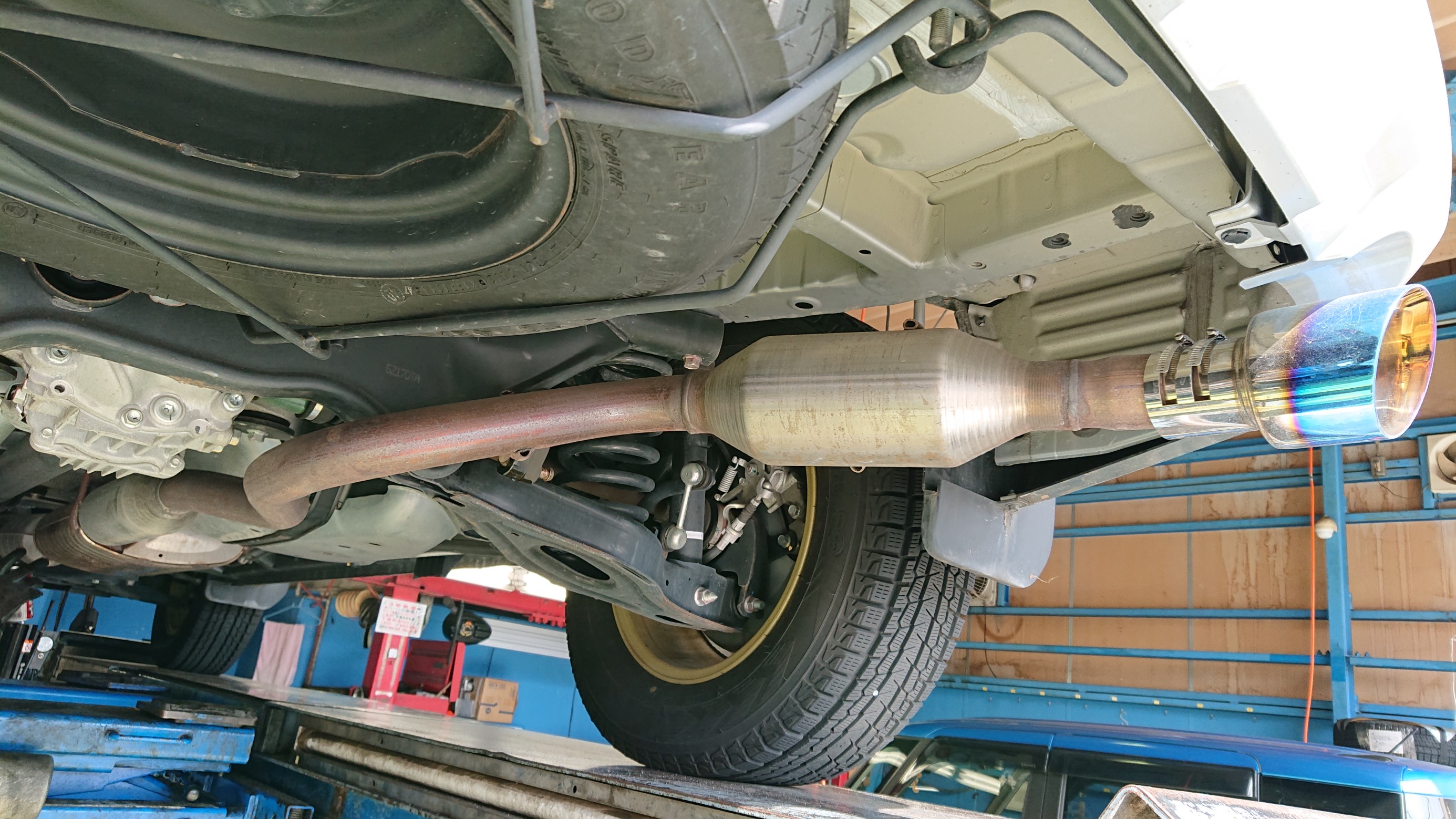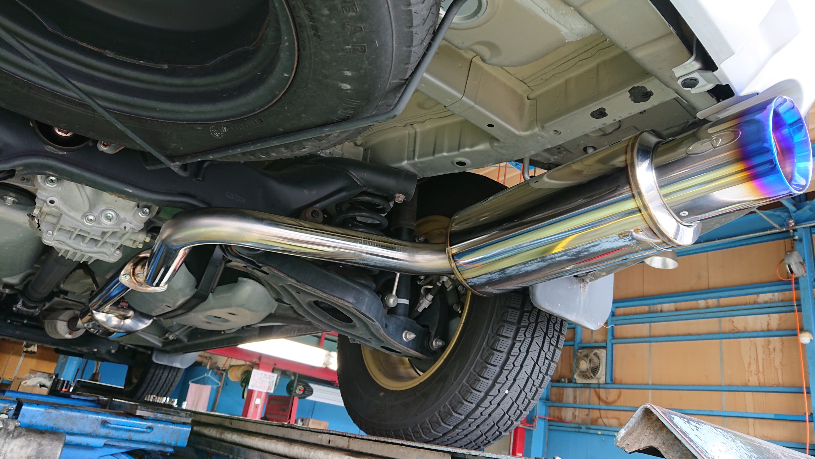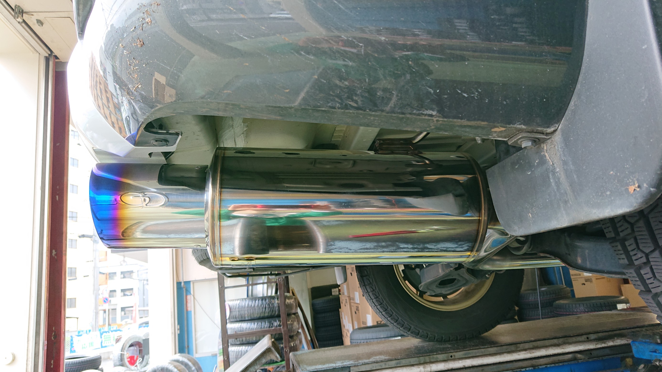 因みに、お客様からマフラー交換のご相談を受けたとき、一度現車確認をしているのですが、マフラーカッターが装着されていることに一瞬気付きませんでした…(´∀` )フフ