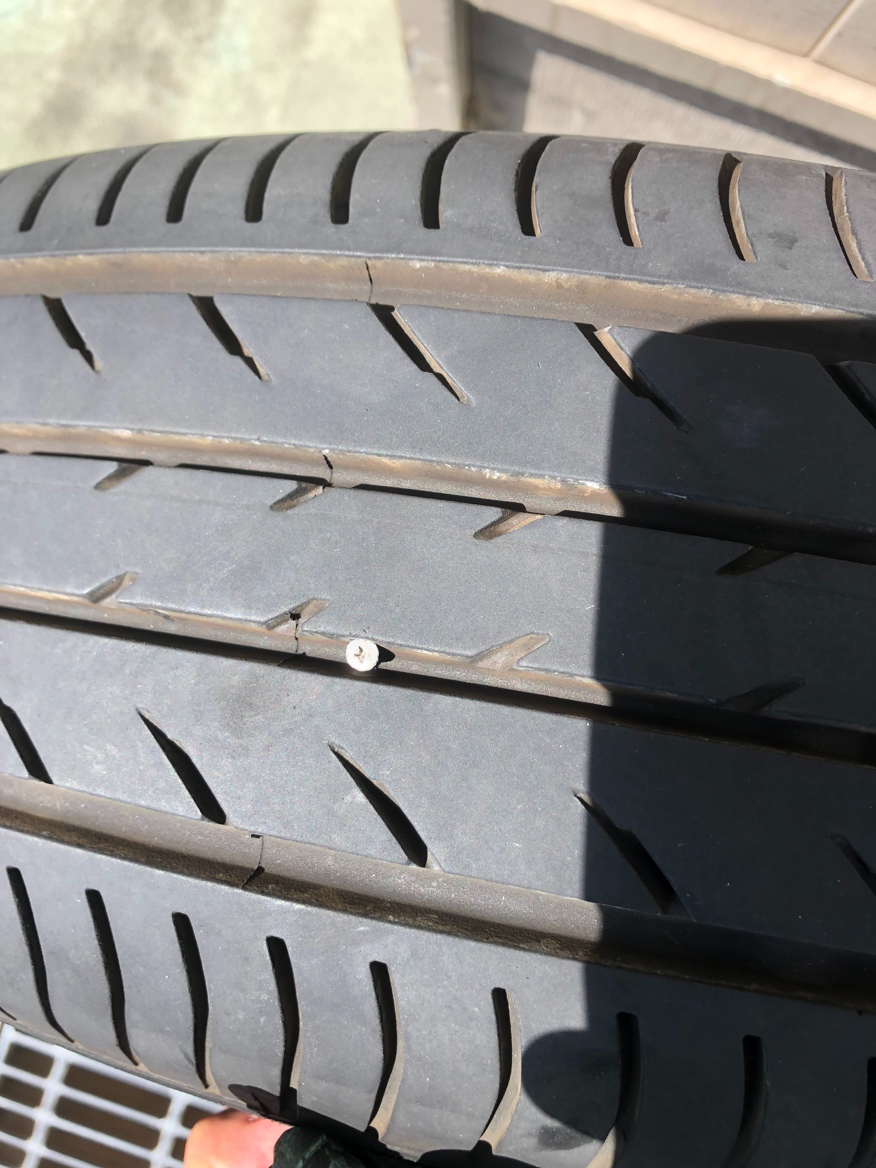応急修理されていたので、パンクした原因がクギ?かどうかこの時点ではわかりませんでした。