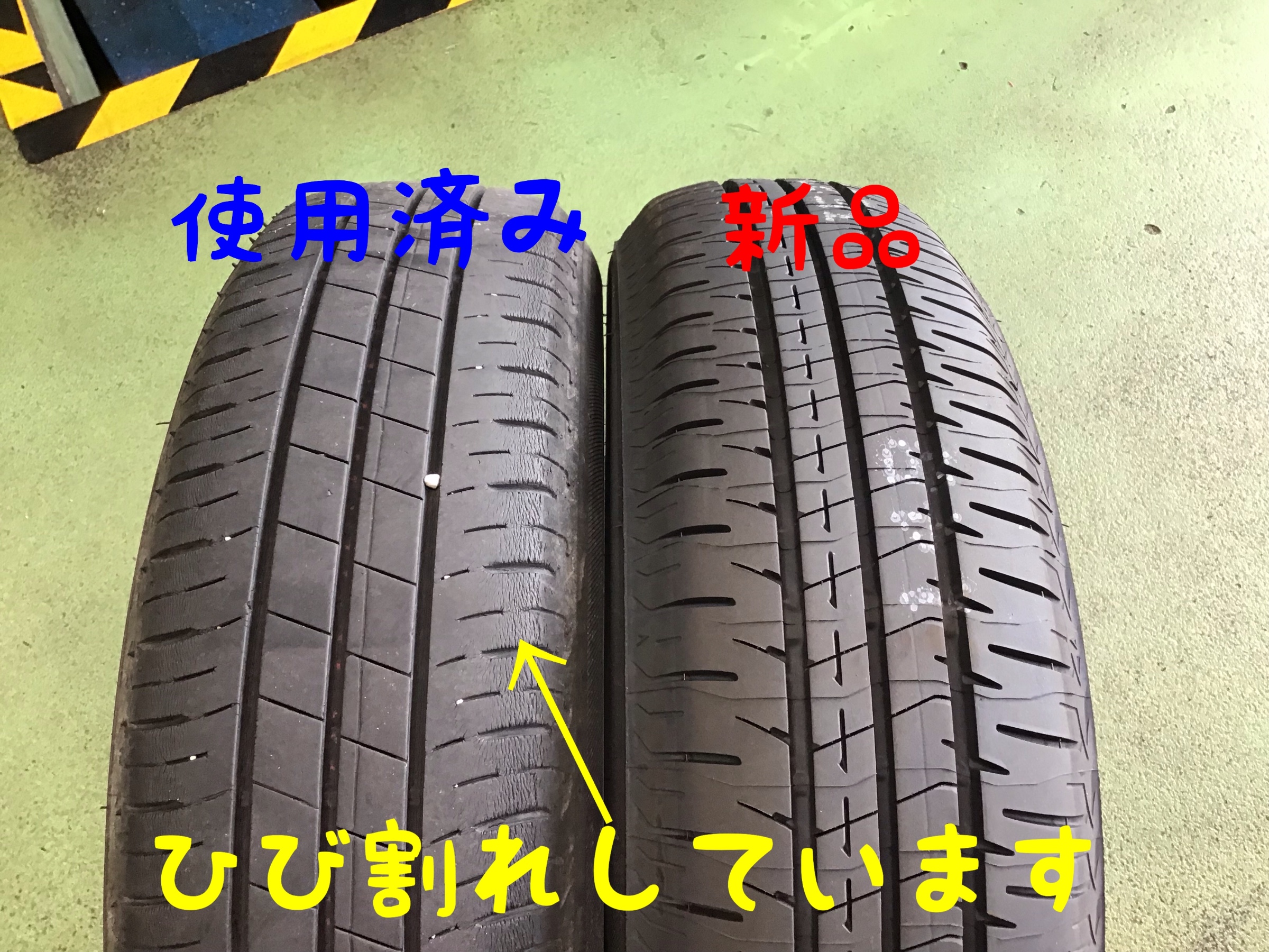外したタイヤと比較してみましょう。
