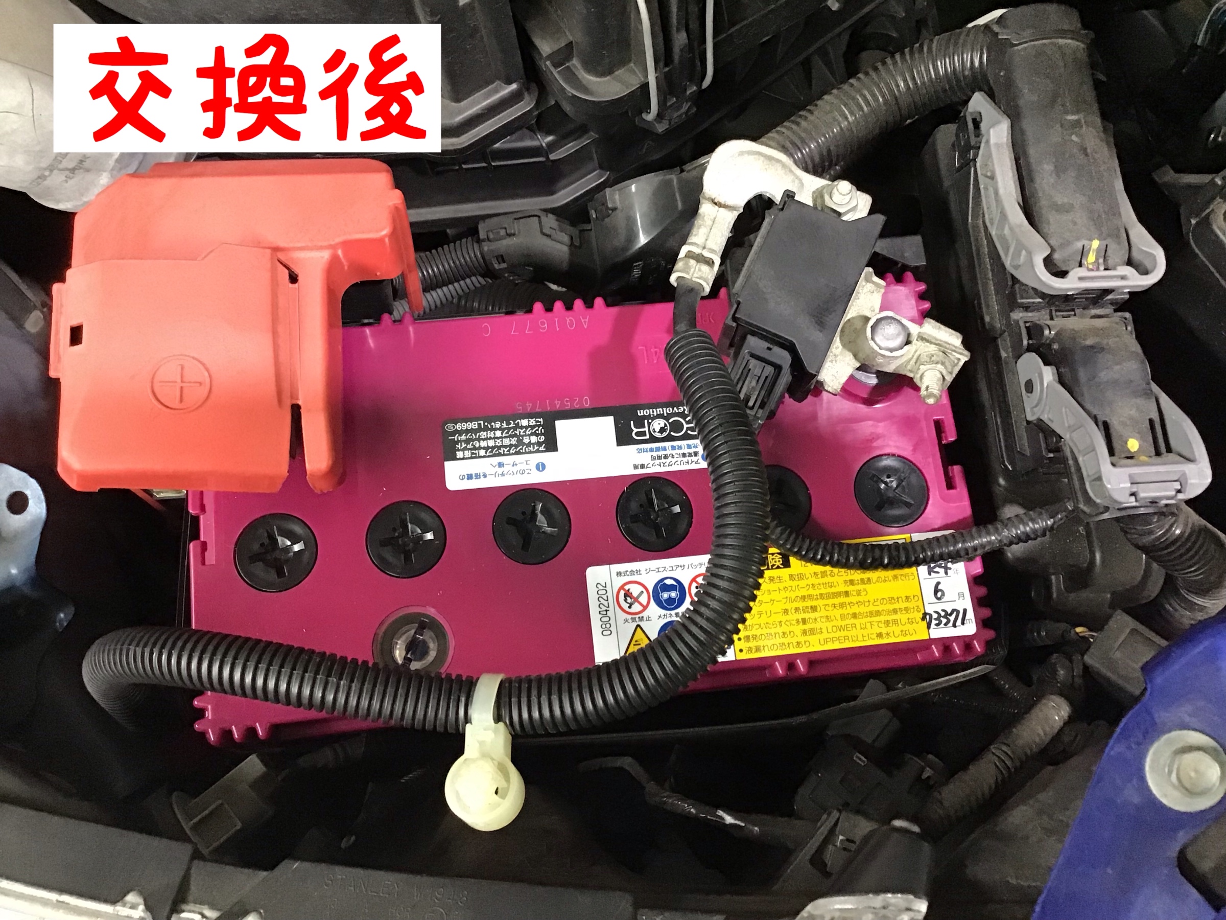 点検の結果、バッテリーが弱っていたので今回交換となりました。
