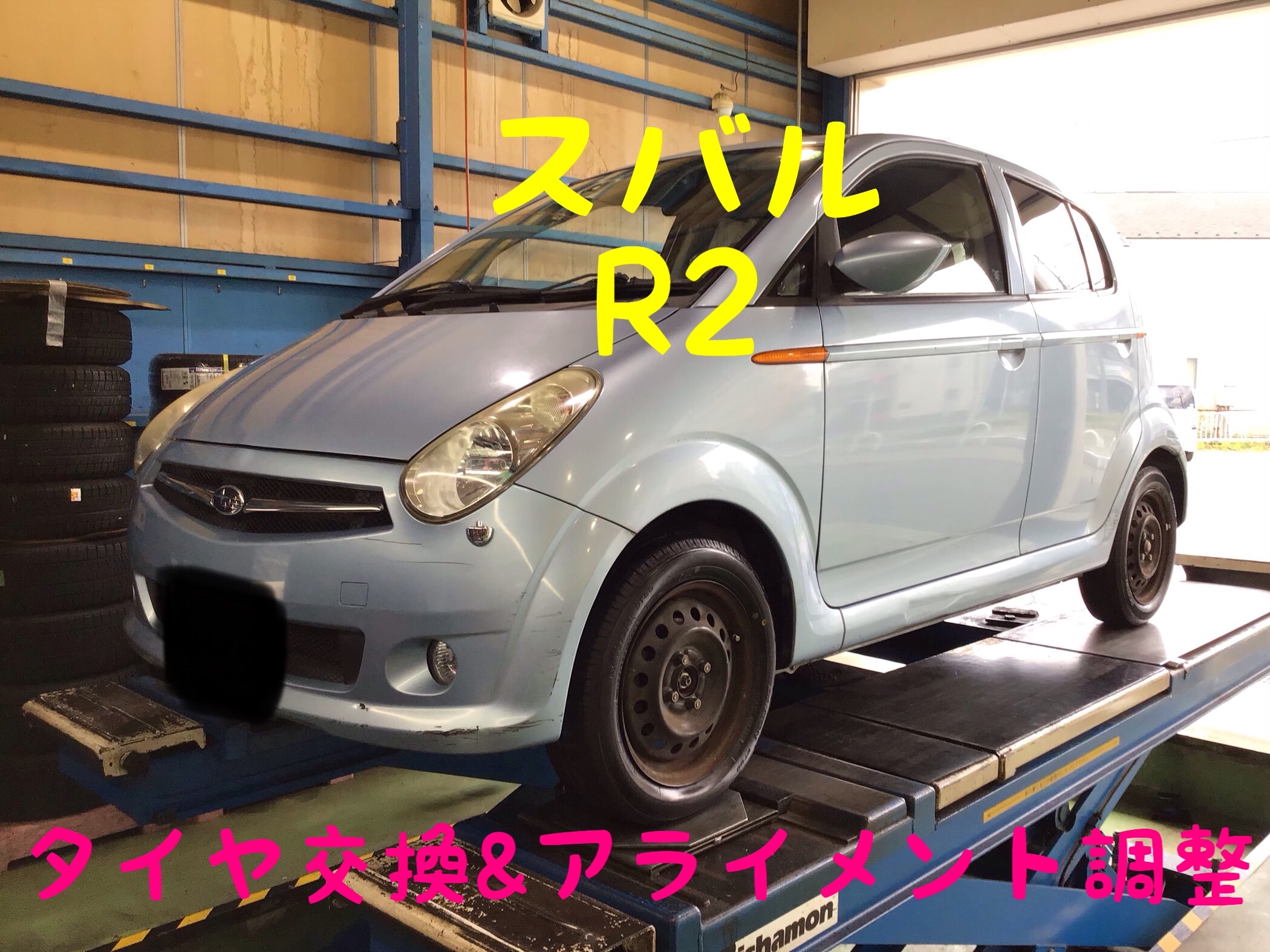 スバル R2 タイヤ交換&アライメント調整