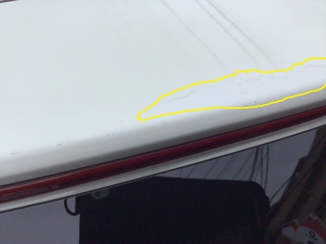 黄色の部分、パリパリです。ボディの塗装がむき出しの状態。