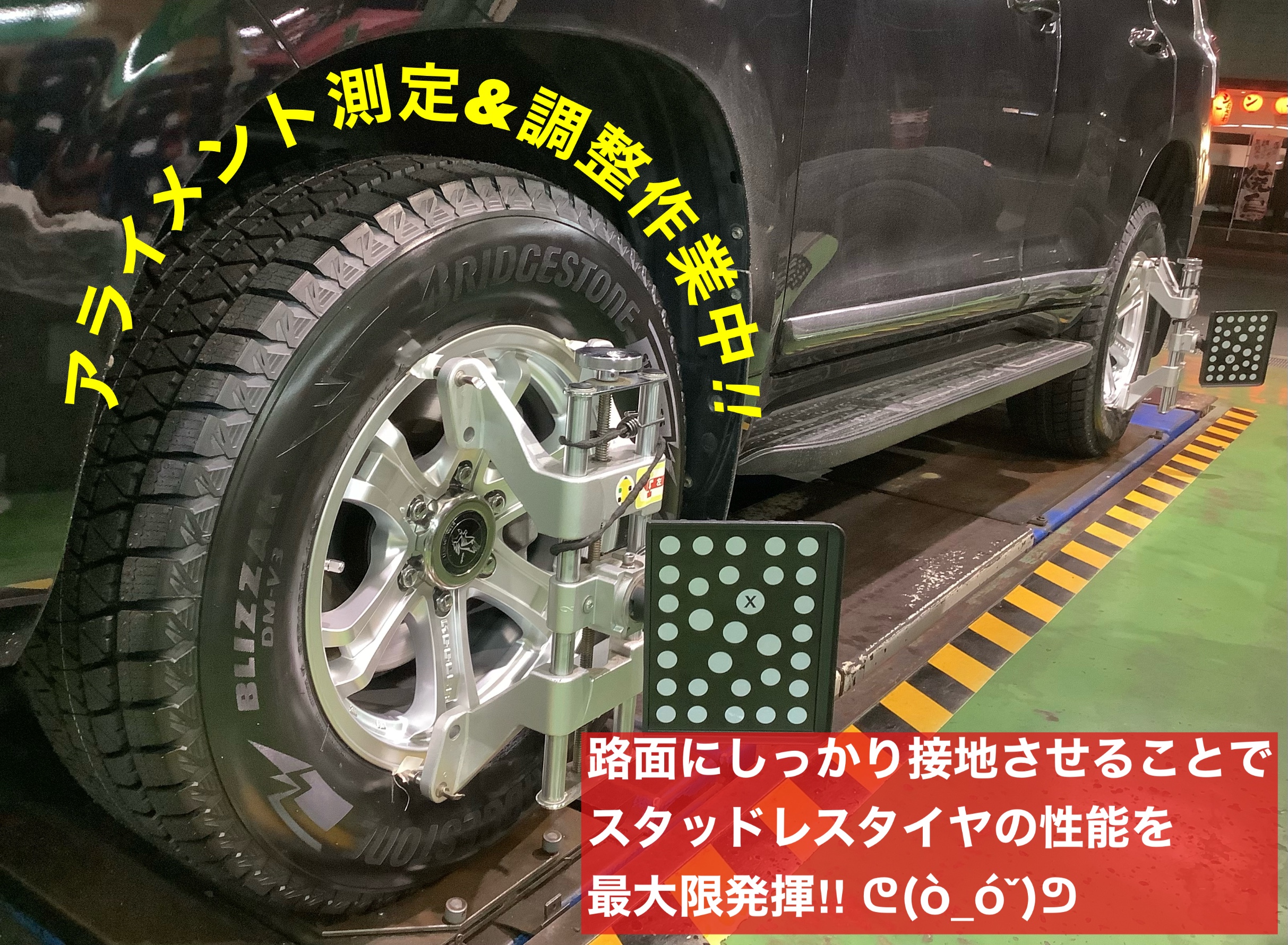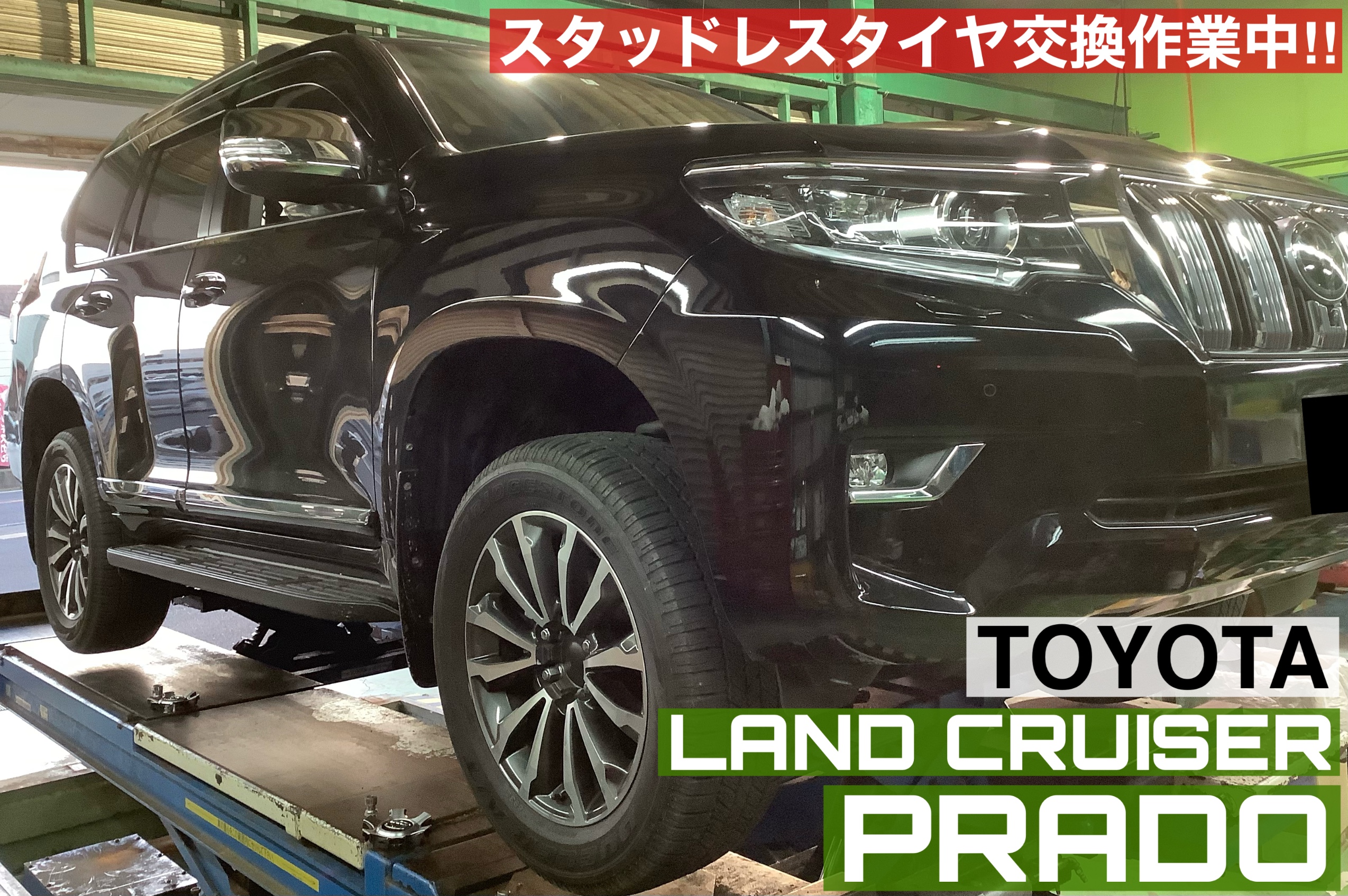 本日は、【トヨタ/ランドクルーザープラド】のスタッドレスタイヤ交換&アライメント作業です(*・∀・)ノ