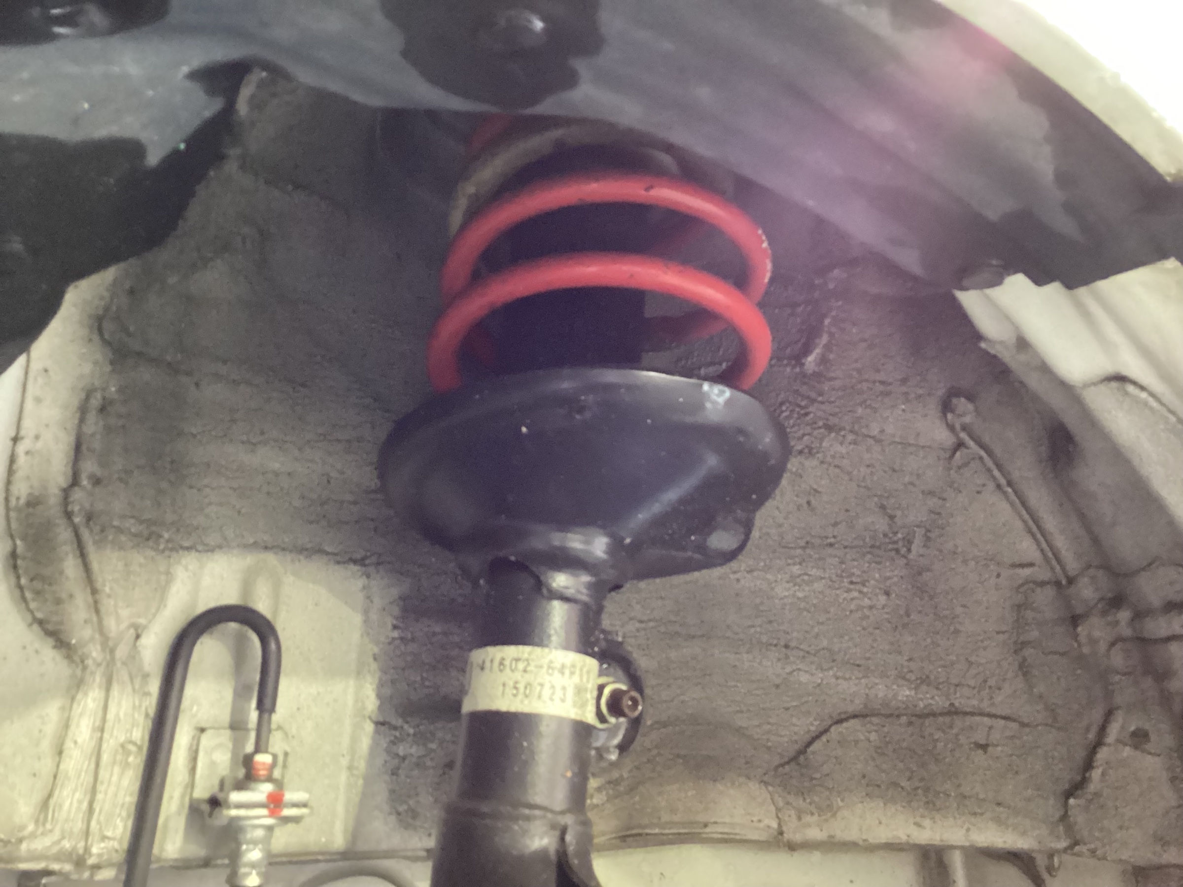 ダウンスプリングを入れて車高を下げているエブリイワゴン。