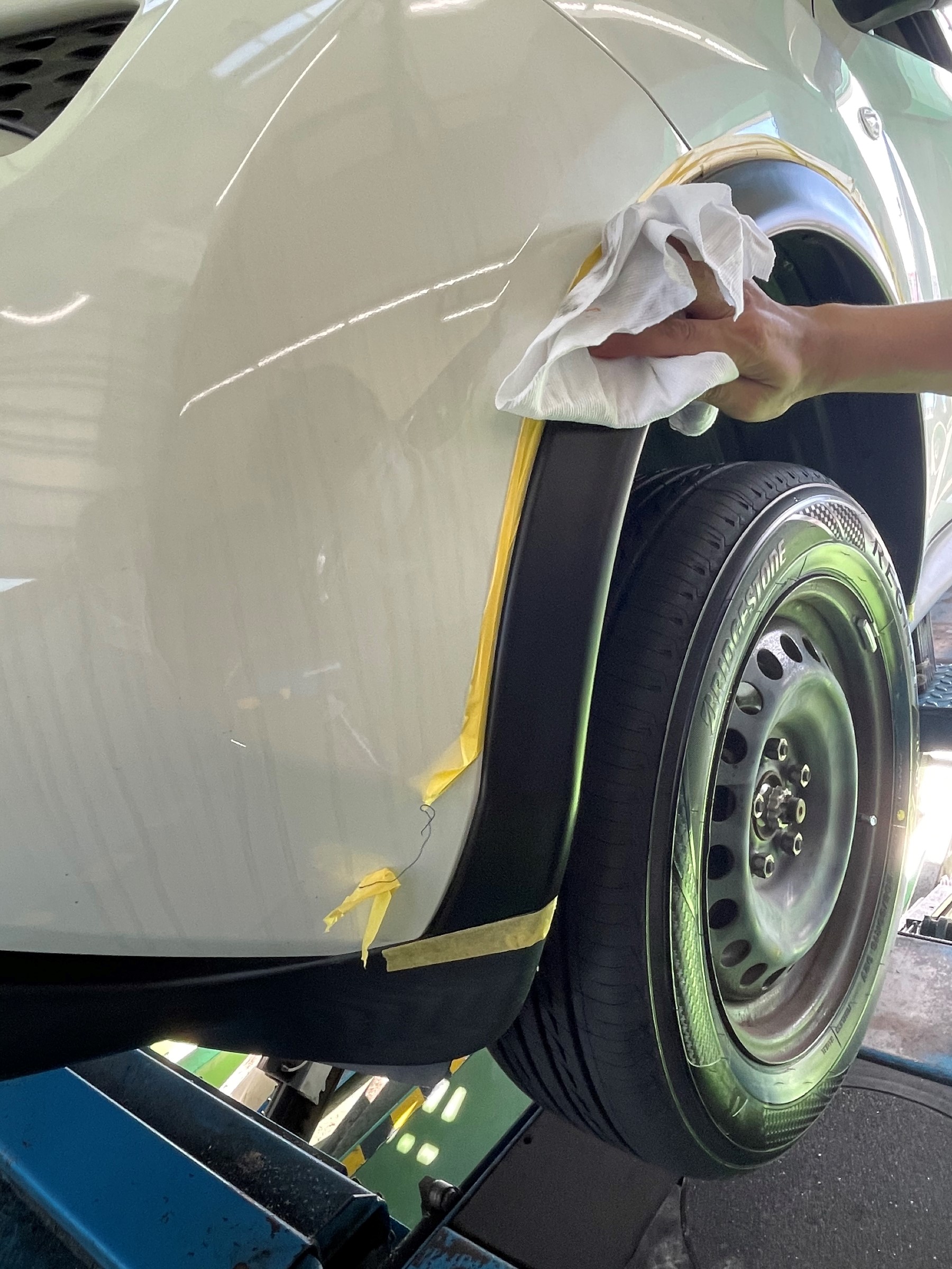フェンダーモールの樹脂コーティングとタイヤ交換作業を行いました!