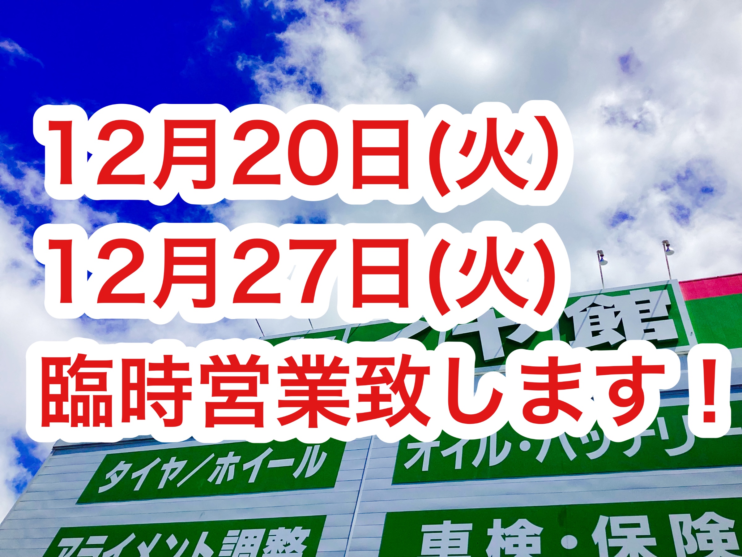 【ご案内】12月20(火) 27(火)営業致します!!