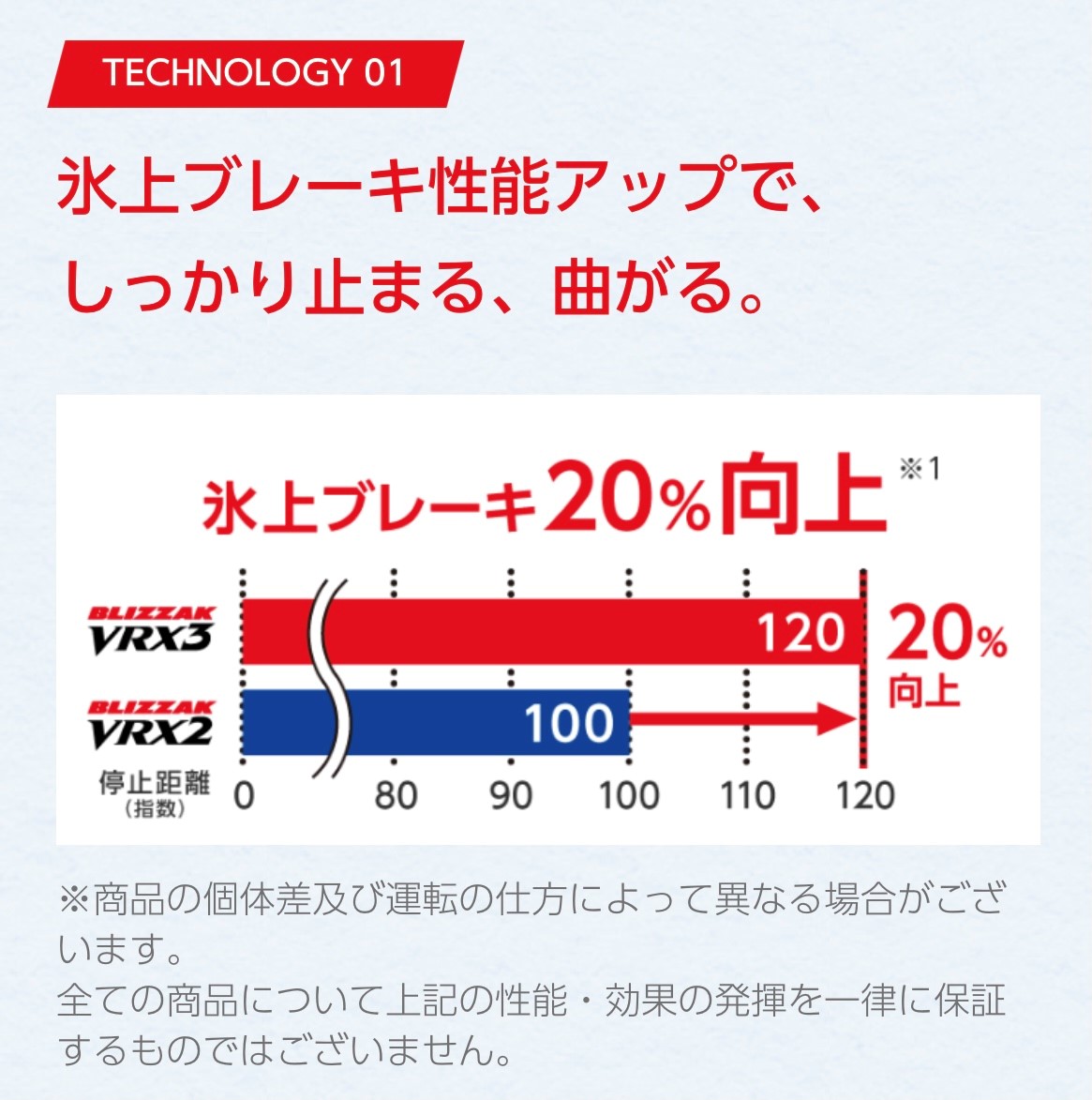 【氷上でのブレーキ性能比較】