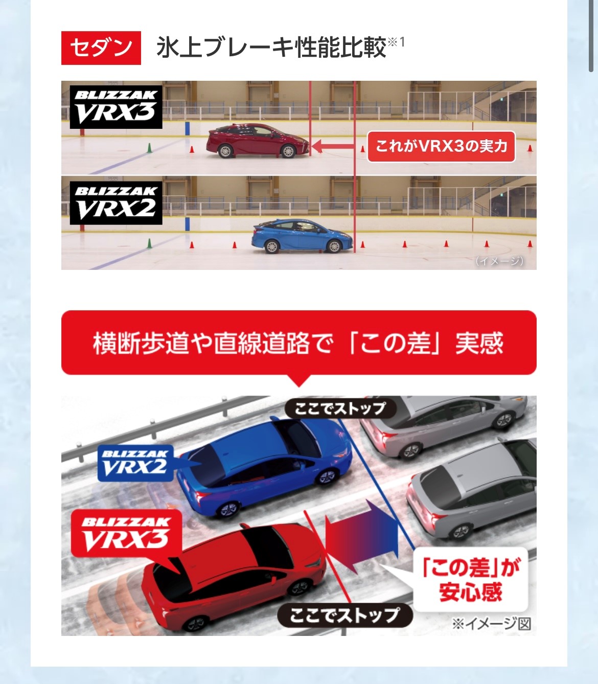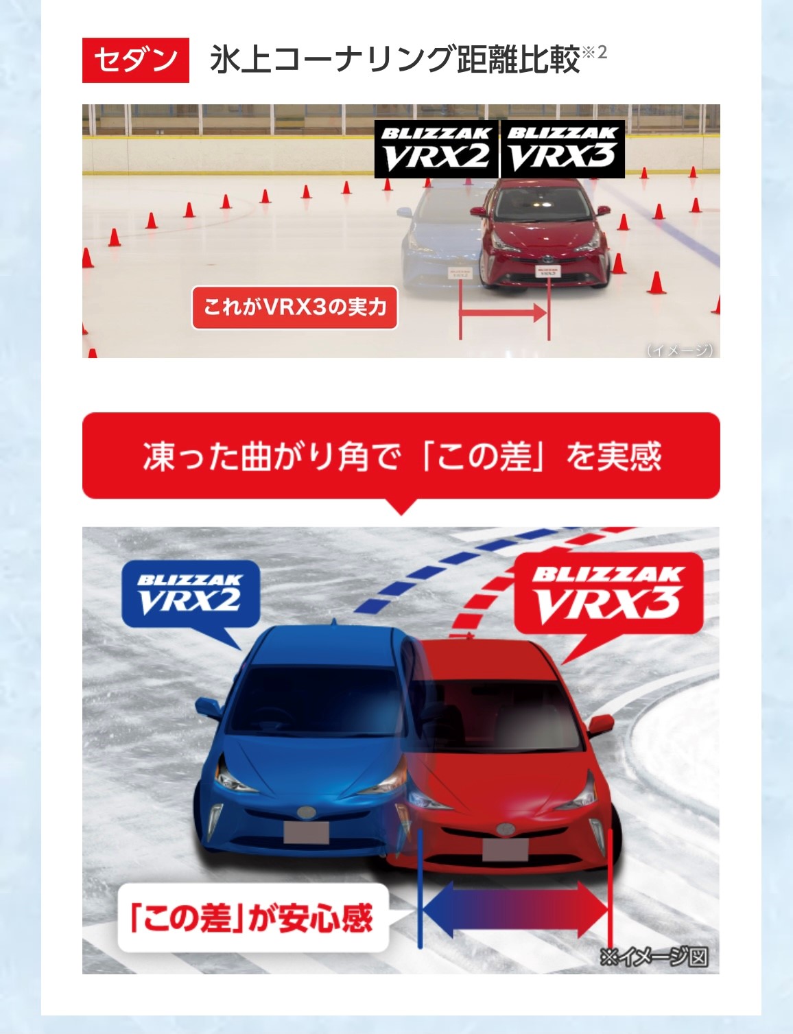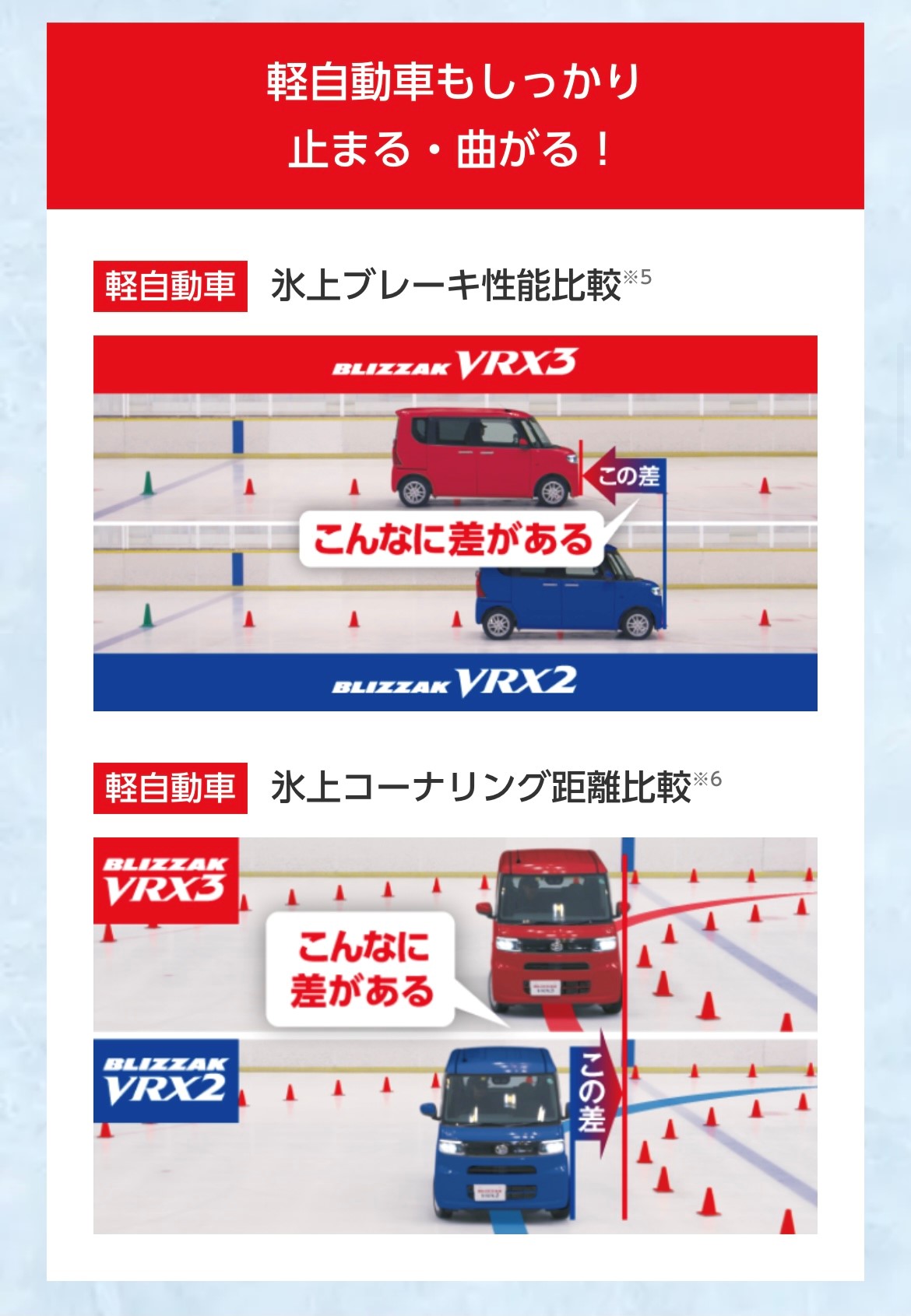 【氷上でのブレーキ性能比較と氷上でのコーナリング】