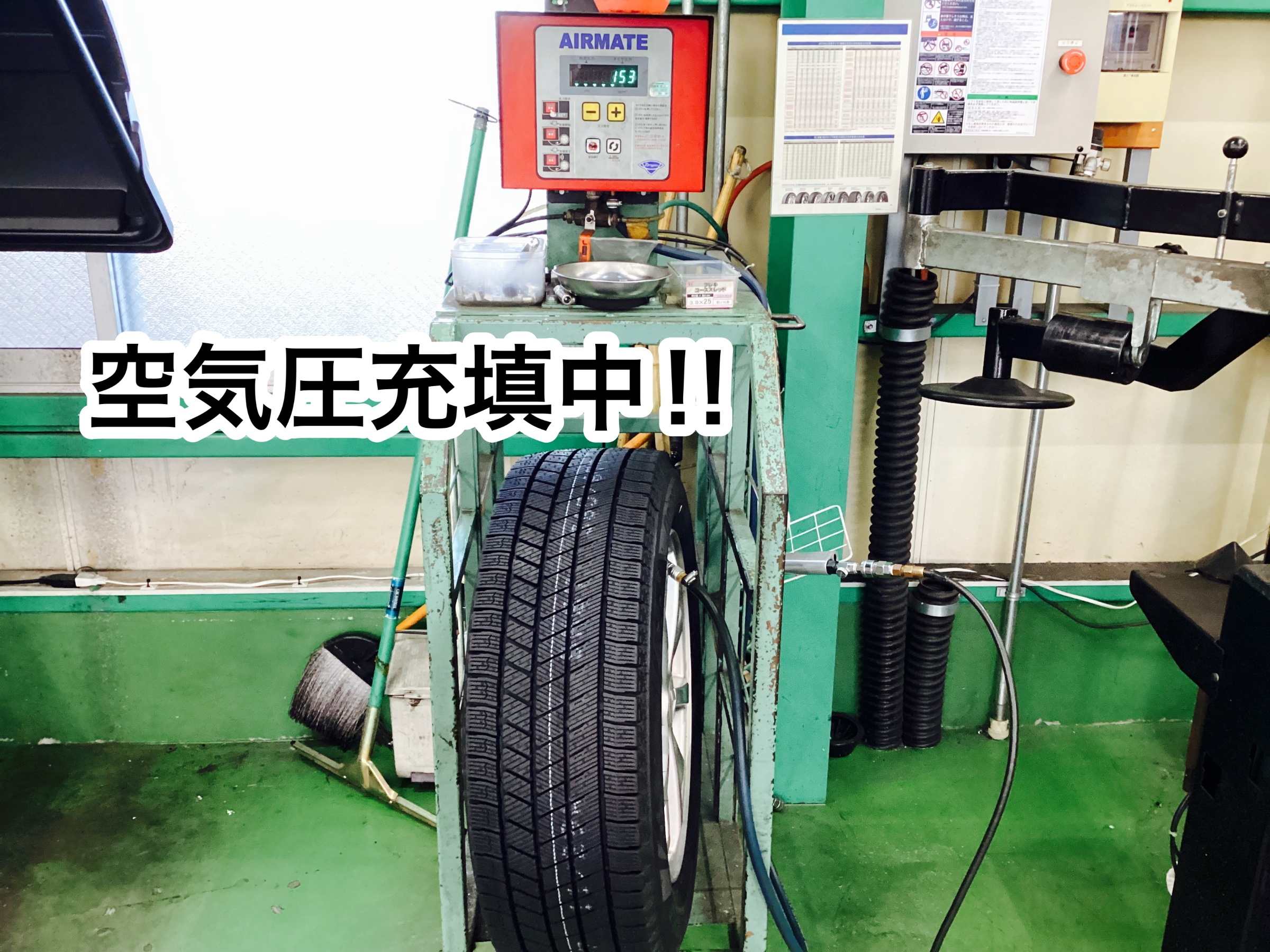 タイヤを膨らませていきます♪