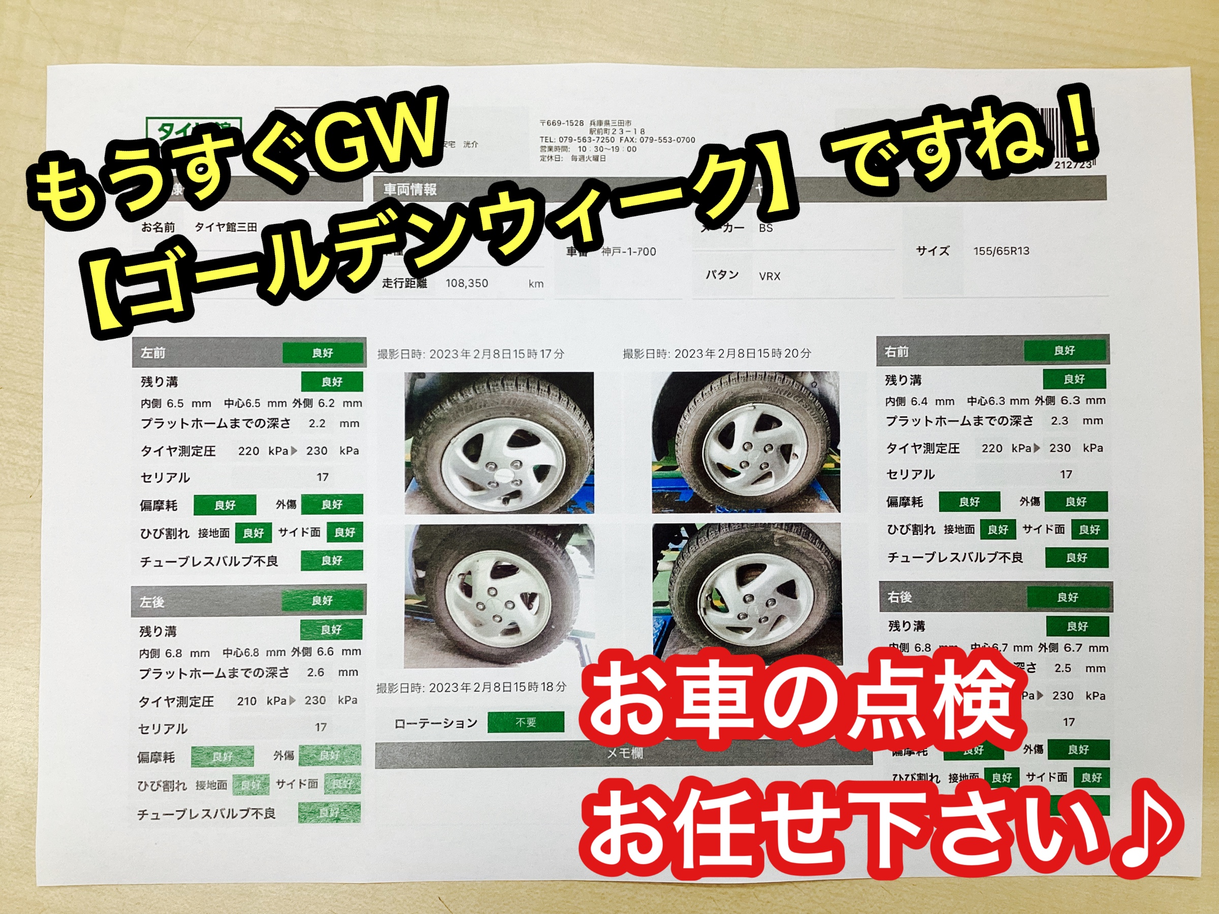 もうすぐゴールデンウィークですね!お車の点検もお早めにしておきましょう♪