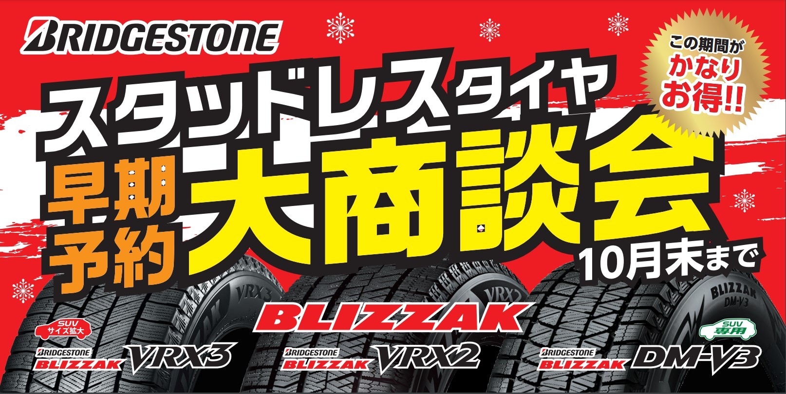 この期間、ブリヂストンのスタッドレスタイヤを