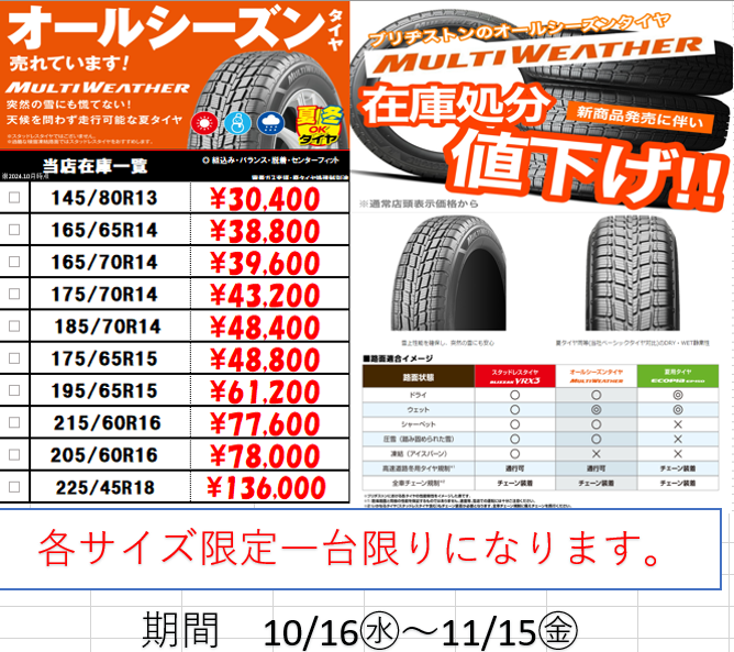 お求めやすくなっております!ブリヂストンのオールシーズンタイヤ マルチウェザー
