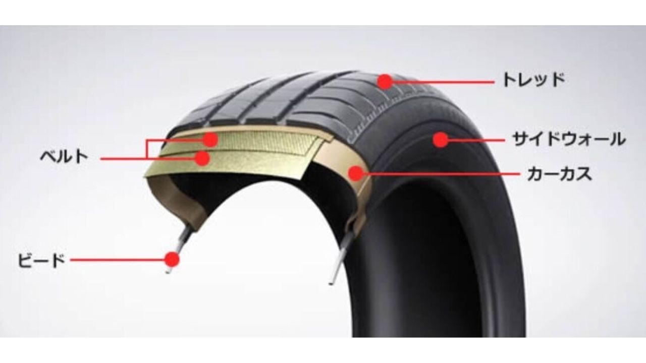 | カーカス | タイヤの骨格を形成するコード層の部分 ワイヤーの露出はこの部分の素材が見えている状態 |