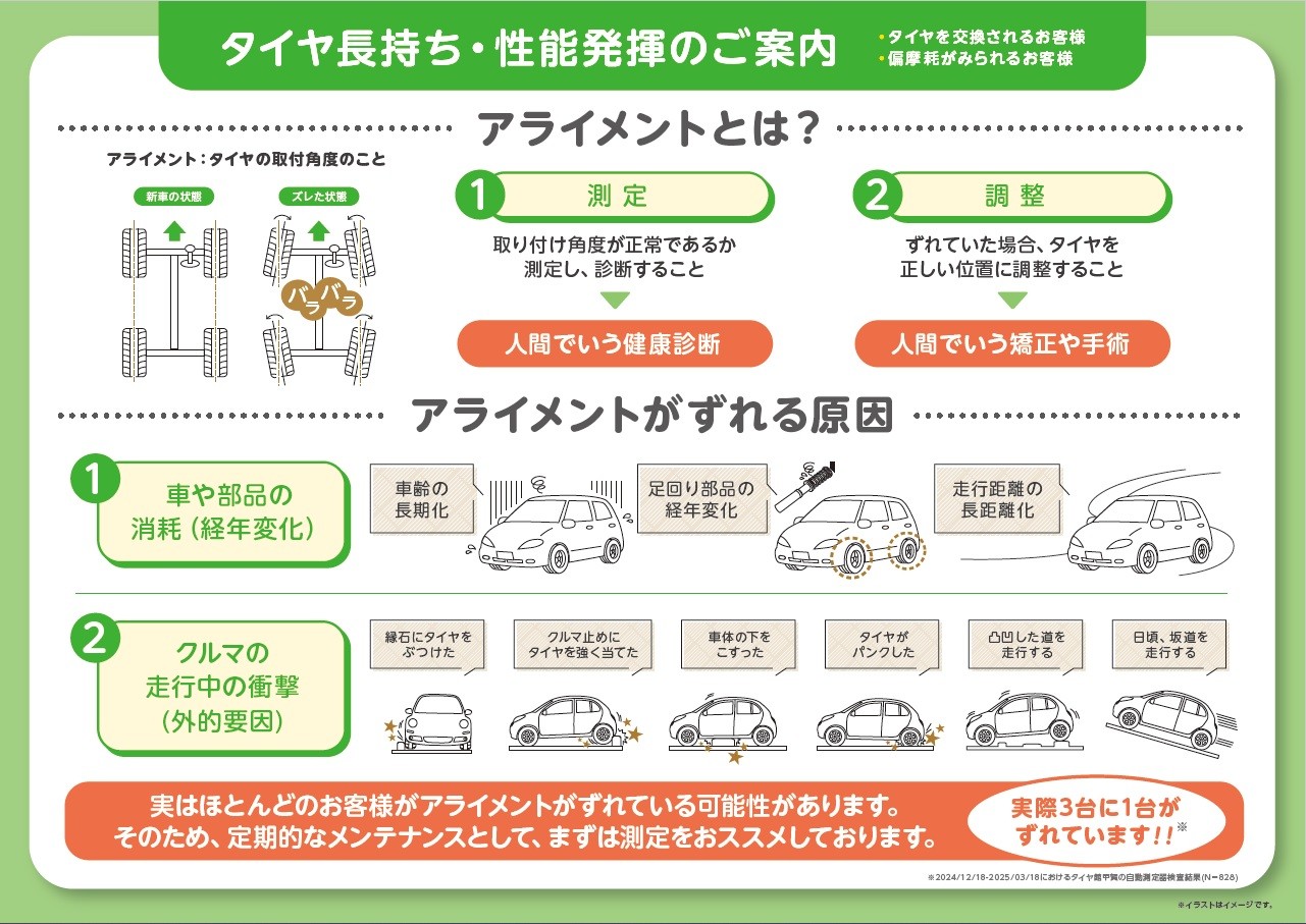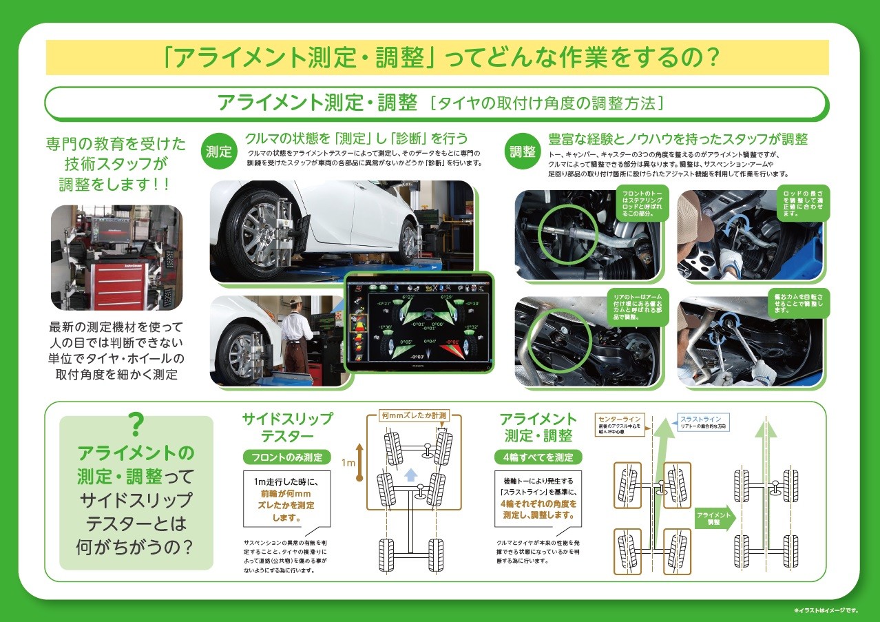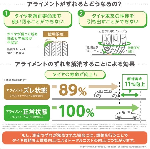 縁石等でぶつけてしまった場合はアライメント調整を同時に