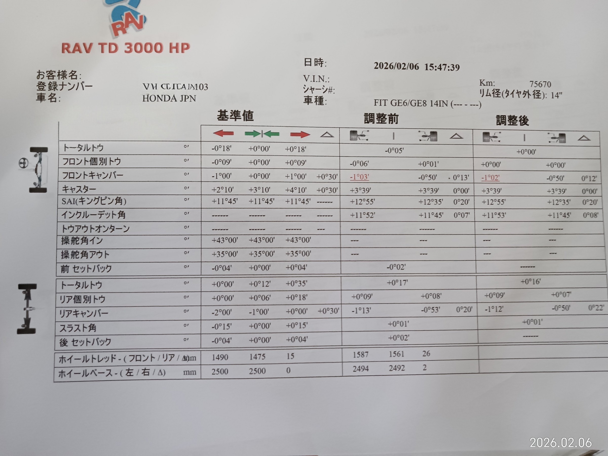 交換したため、アライメント調整となりました。