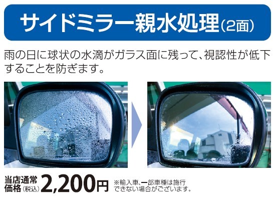 ➁サイドミラー親水処理(2面)