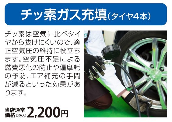 ③窒素ガス充填(タイヤ4本)