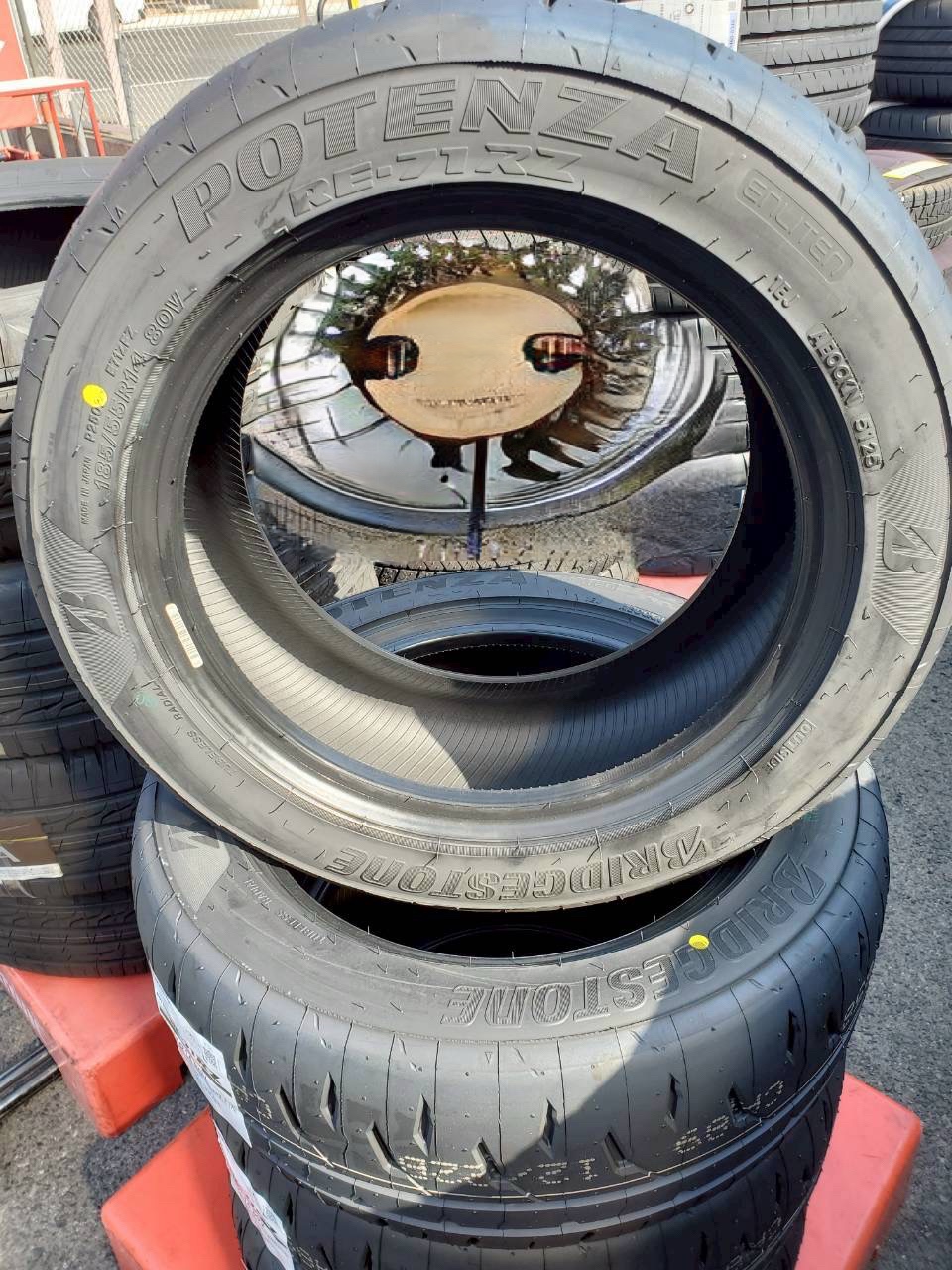 「ブリヂストンPOTENZA RE-71RZは公道からサーキットまで高い走行性能を発揮。RE005は日常で走る楽しさを提供。スポーツタイヤ選びは当店へ。」