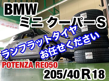 ようこそ!!タイヤ館三田店のホームページへ 今回の記事はタイヤ交換です。 車種はBMWのミニ クーパーSで~す。 取り付けたのは新車付きタイヤの ブリヂストン POTENZA RE050 RFT ☆ ランフラットタイヤの交換です。 タイヤサイズは205/40R18 各車種、新車付きタイヤもお取り寄せし交換対応可能です...