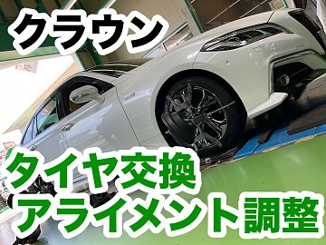 日 タイヤ館三田店のホームページをご覧いただきまして ありがとうございます。 まだまだ暑い日が続いていますが、 体調崩していませんか?? 当店のメンバーは全員元気ですよ♪♪ さ~てさて、本日ご紹介するのは トヨタ クラウンのタイヤ交換とアライメント調整作業です。 クラウンの型式は6AA-...