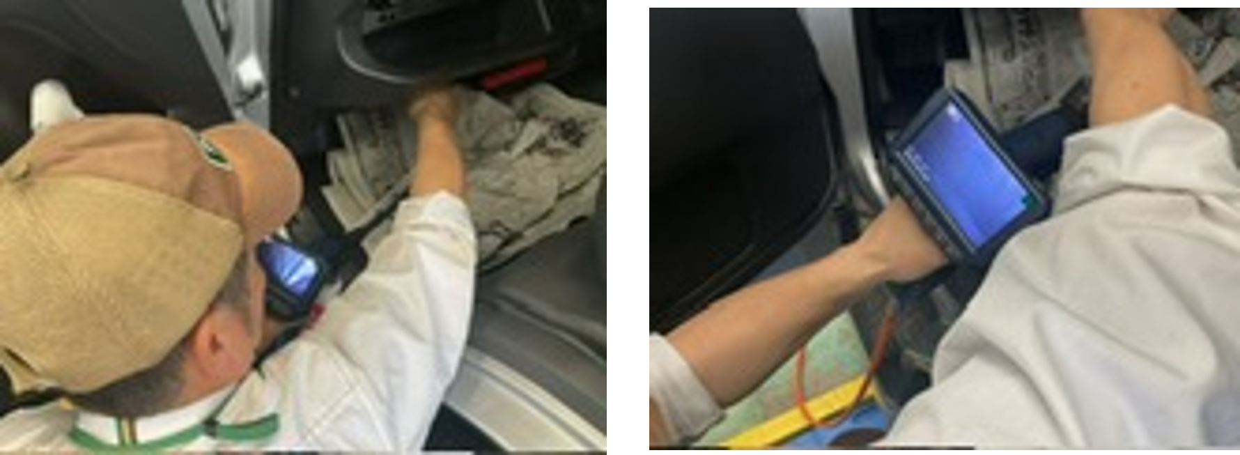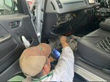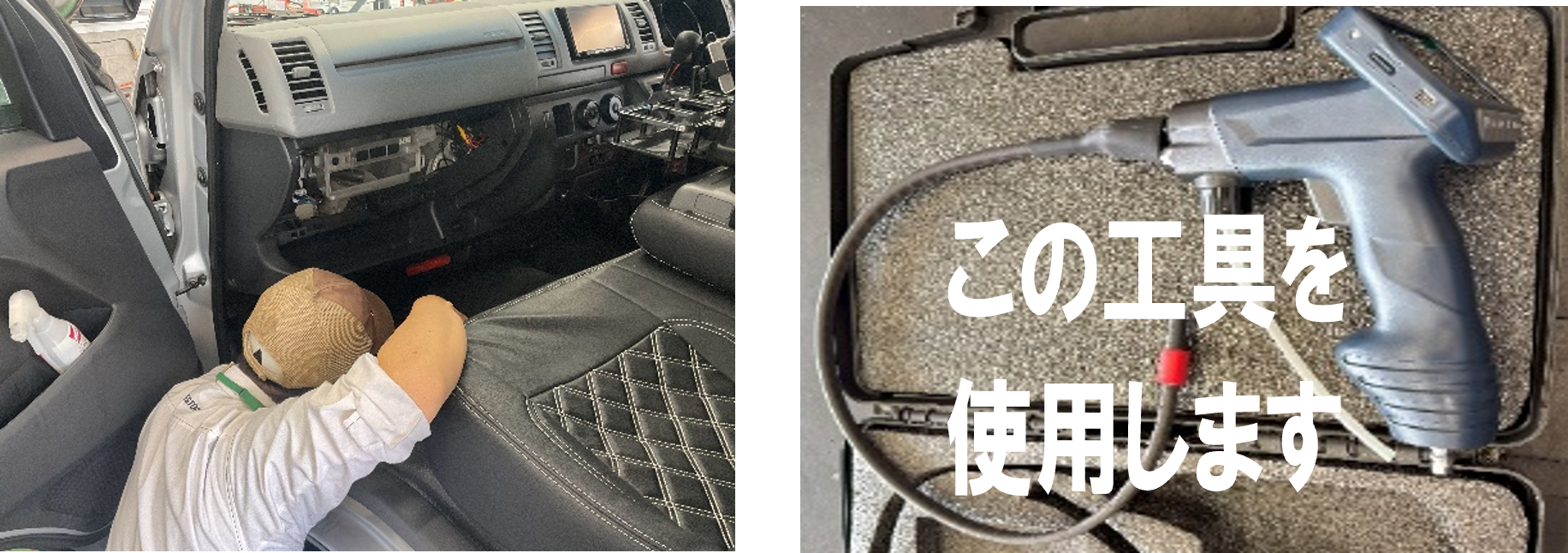 液剤が車内に飛び散らないよう新聞紙などで養生します(約15分)