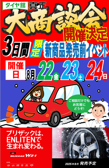 ☆ スタッドレスタイヤ 商談会開催 8/22~24 ☆
