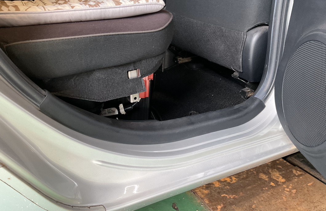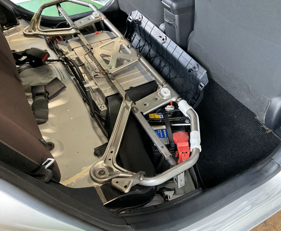 アクアのバッテリーはボンネットの中ではなく、後部座席のシートに下にあります。