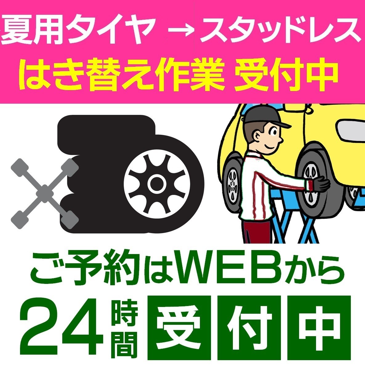 タイヤ館真正 予約サイト(ご自宅からタイヤホイールセットを持ち込みの方)