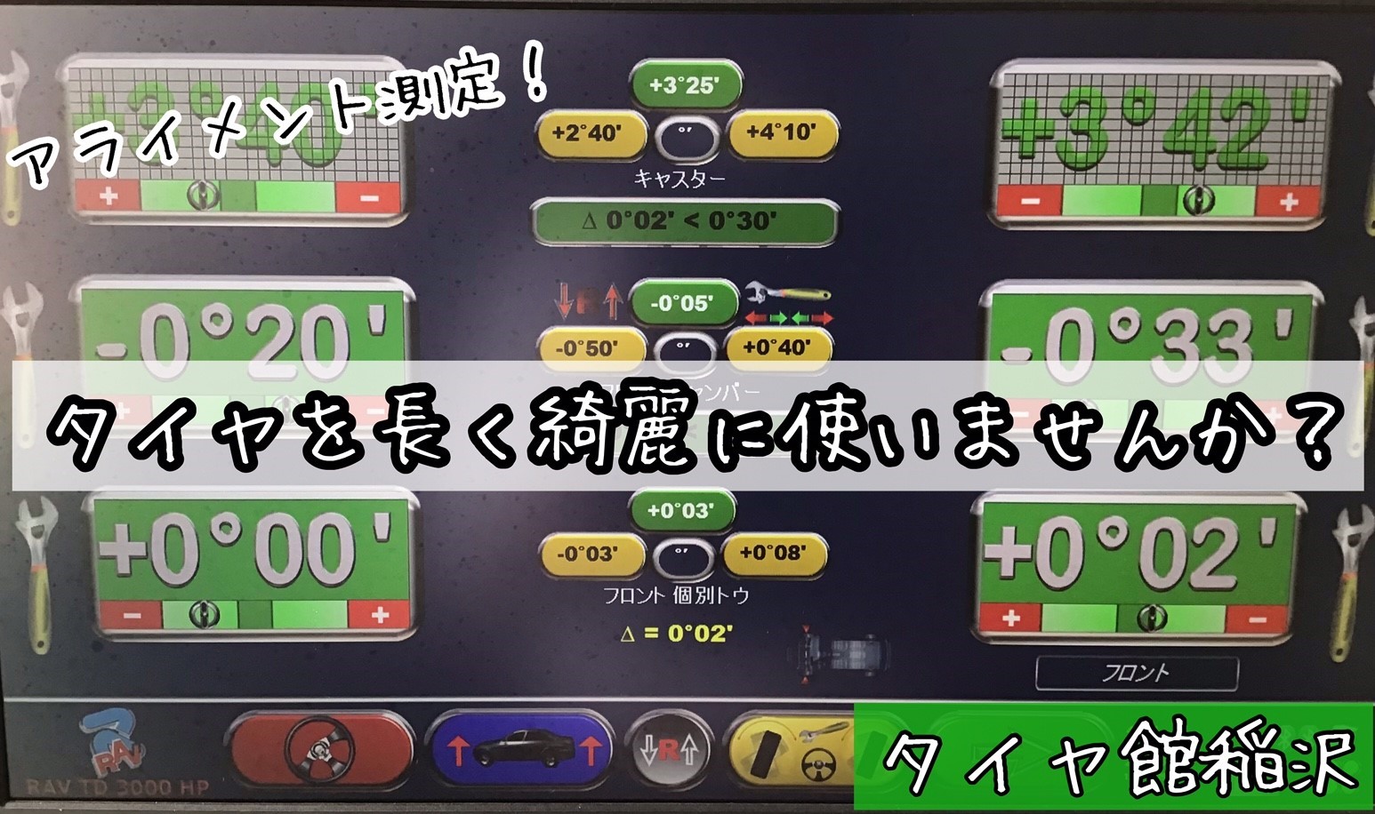 今回のお客様の場合、タイヤを交換して頂くタイミングでアライメントをして頂きました!