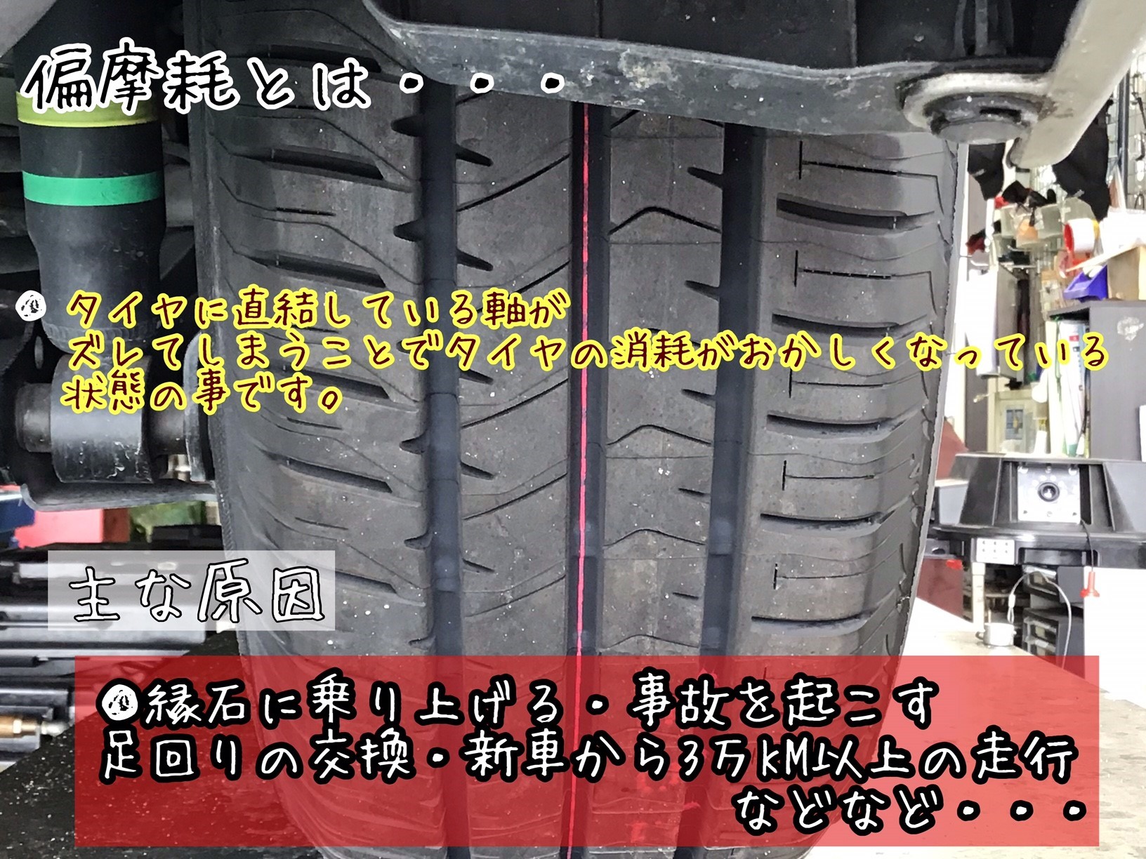 原因はアライメントのズレで起きてしまう偏摩耗です!