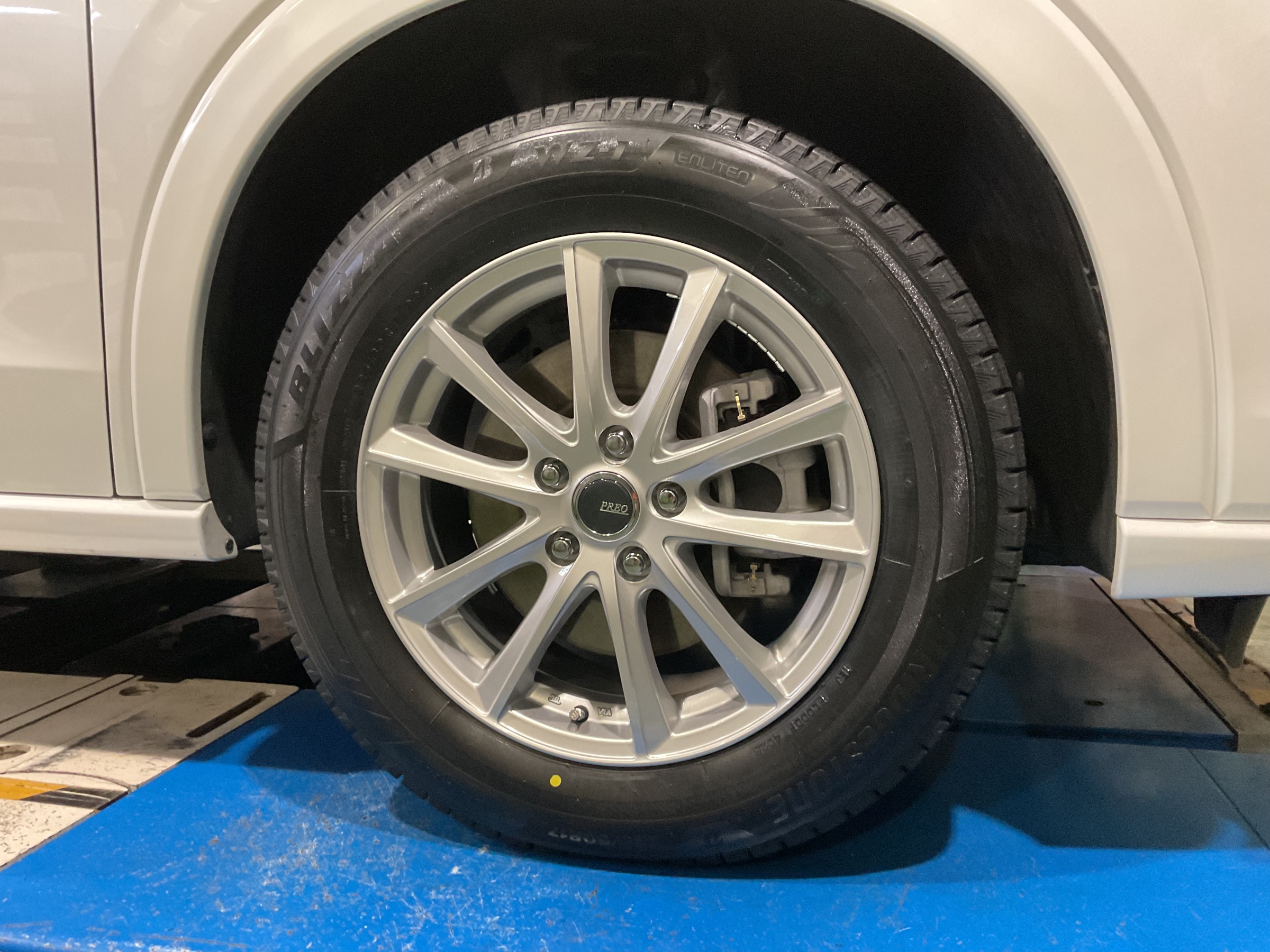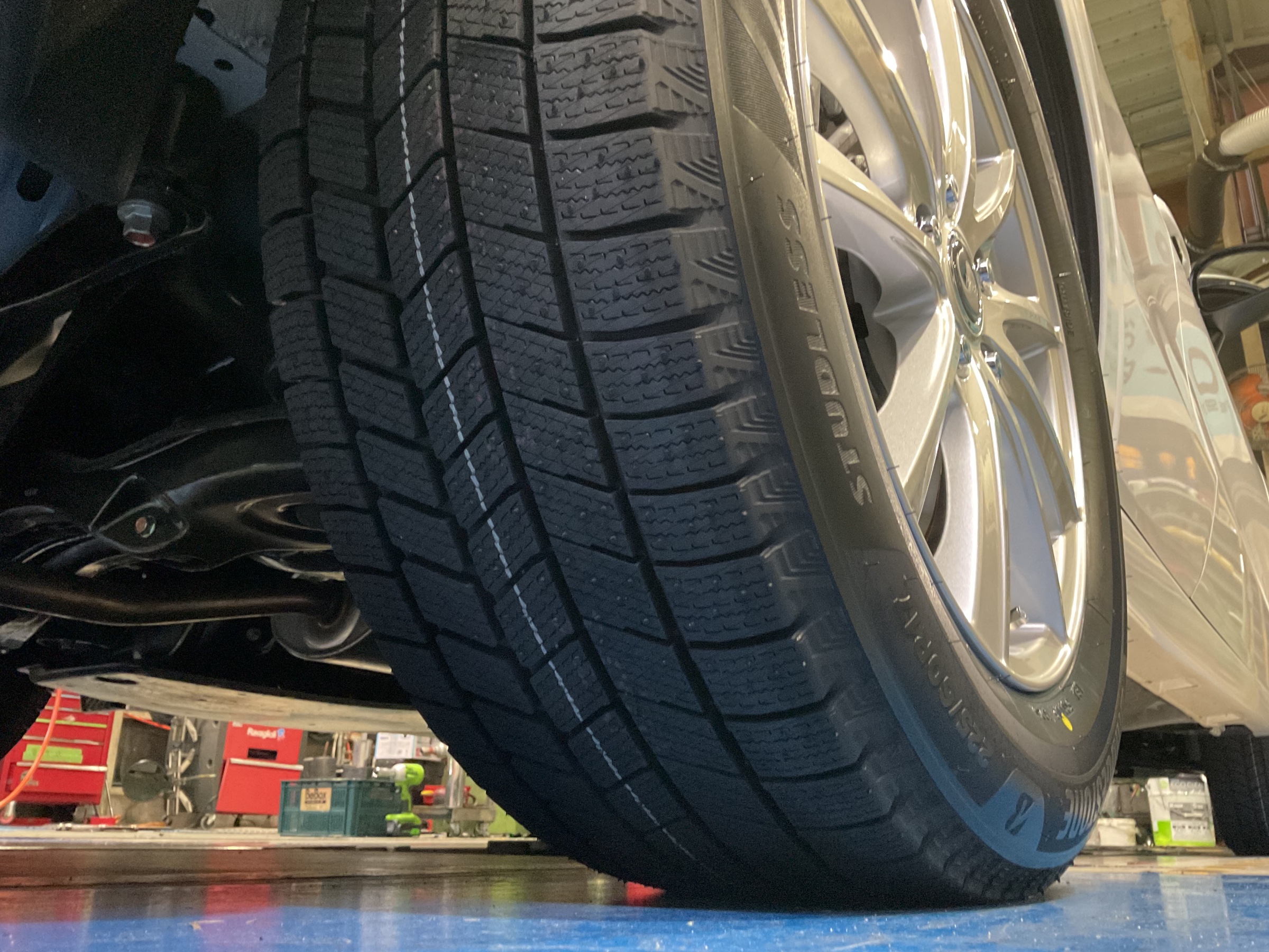 新商品のブリヂストンのスタッドレスタイヤ「BLIZZAK WZ–1」のホイールセットを装着させていただきました。