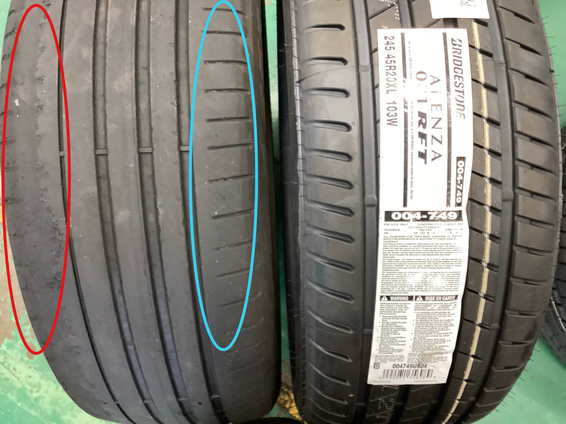 お車購入後にアライメント作業が未施工だったため、新しいタイヤの性能発揮のため