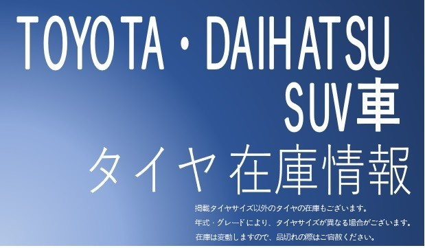 タイヤ館真正の【在庫情報】車種別 トヨタ・ダイハツ SUV編 ≪岐阜県本巣市のタイヤ専門店≫