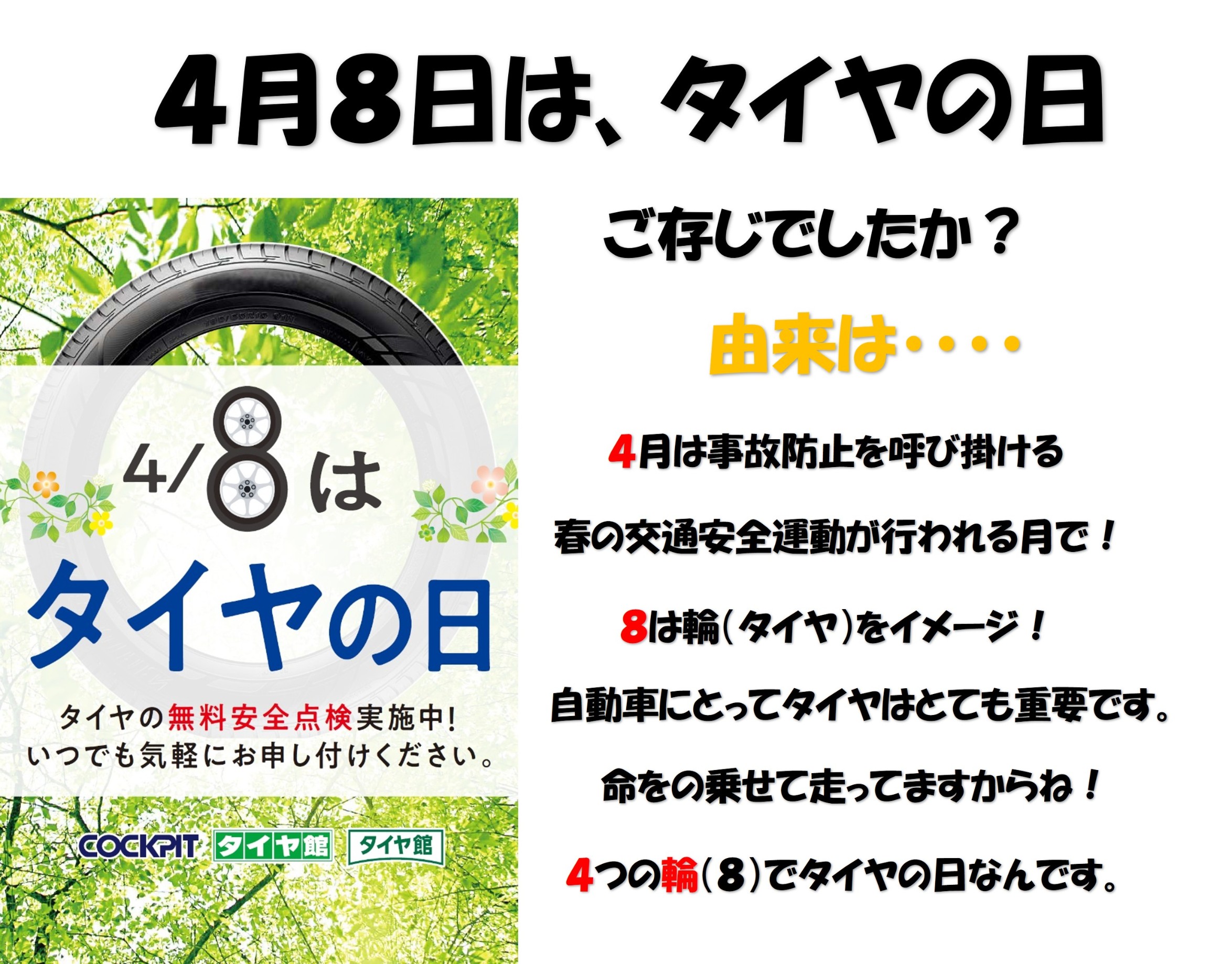 4月8日は「タイヤの日」 本日営業してます!