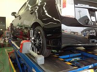 195/65R15 レグノGR-XI 15×60 5-100(45) ECOフォルムCRS15 本日取付&アライメント作業いたしました。 アライメント中の写真で、ホイールがわかりにくくてゴメンなさい。