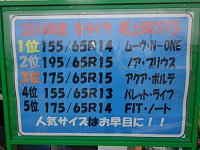 こんにちは。 第255回目のブログでゴメン! 略してブロゴメです。 本日で売り出しが終了いたします が!! 実は、軽トラフェアーが始まっています。 軽トラタイヤが工賃込みでなんと!!!!!! (笑)価格は店頭で♪ これを見逃したら絶対損をしますよ~\(◎o◎)/! それでは今回は これにてゴメン!!