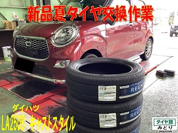 岐阜市、本巣市、瑞穂市、北方町、揖斐川町、池田町、大野町 ご近所にお住いの皆様、こんにちは! 本巣市にある【タイヤ館 真正】です(*'▽') キャストスタイル タイヤ交換 <<作業詳細>> 車種:ダイハツ キャストスタイル(LA250S) タイヤ銘柄:ブリヂストン REGNO GR-Leggera タイヤサイズ:16...