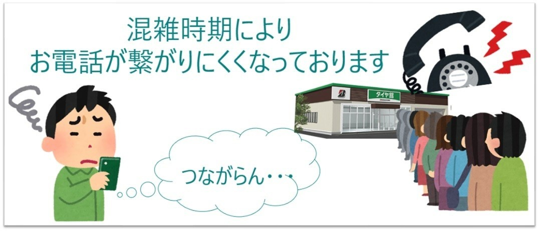 繁忙期中の対応 2025年10月27日 タイヤ交換で混雑する時期は店頭・電話対応が困難な場合がございます。 何卒、ご理解くださいます様お願い申し上げます。 ご予約はWEBからも可能ですのでぜひご利用ください。 ご予約コチラから