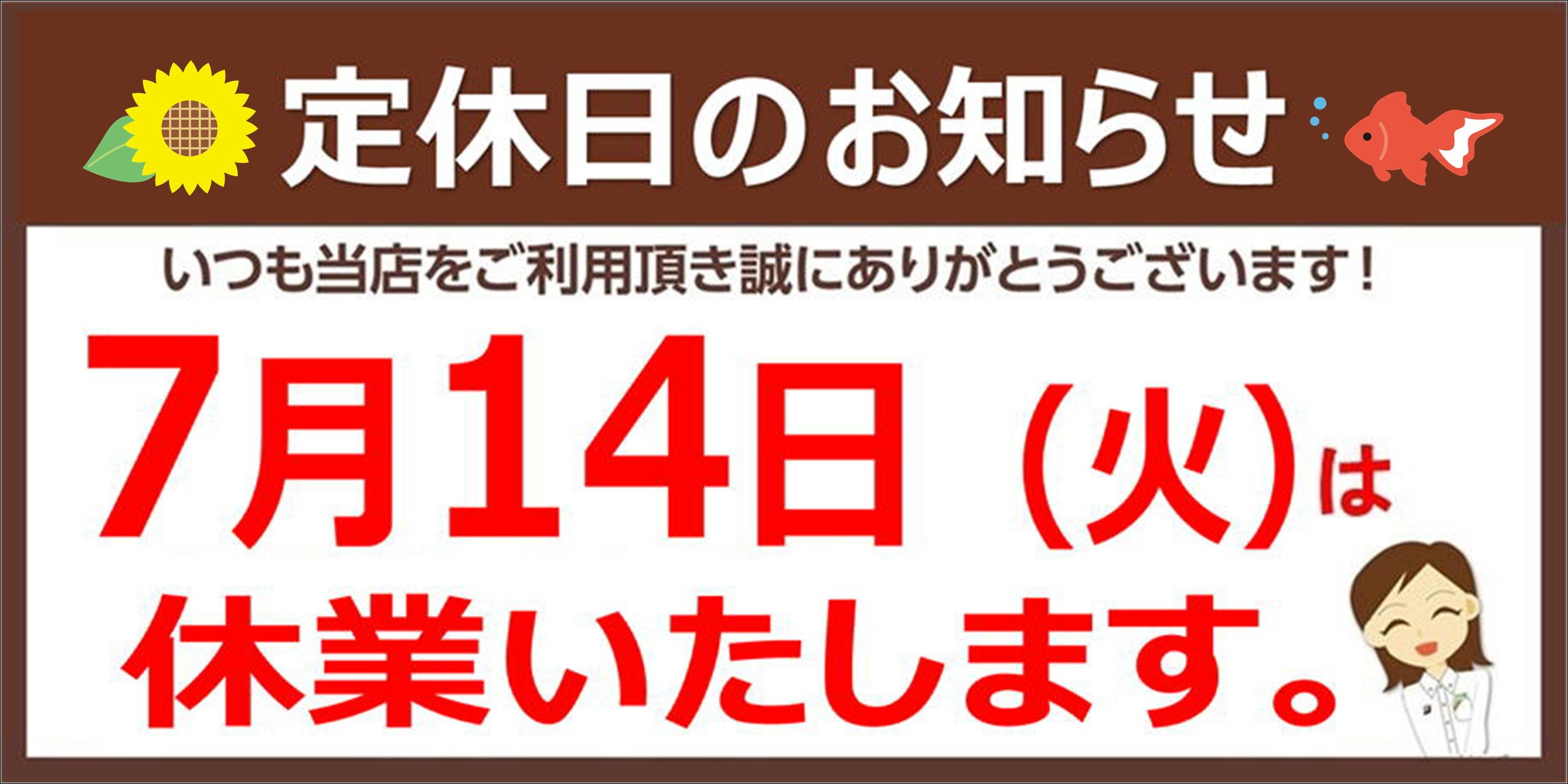 明日7/14(火)は定休日となりますのでご利用のお客様は